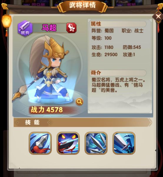 武将攻略第七期这次小婵带来第七个武将,五虎将之一马超。作为首充赠送的英雄,相信小伙伴们几乎都是人手一个马超吧。马超着独特的普攻,攻击过程中上下两次伤害,前期推图的不二选择~虽然马超的技能和赵云搭配有不错效果,但是赵云在目前版本并不是很强势。马超和其他蜀国武将搭配也有不错的效果哦,这里小婵给大家推荐刘备和魏延,和马超搭配~武将获取途径:酒馆抽取、雅间抽取,碎片合成随机获取,阵营自选礼包也有概