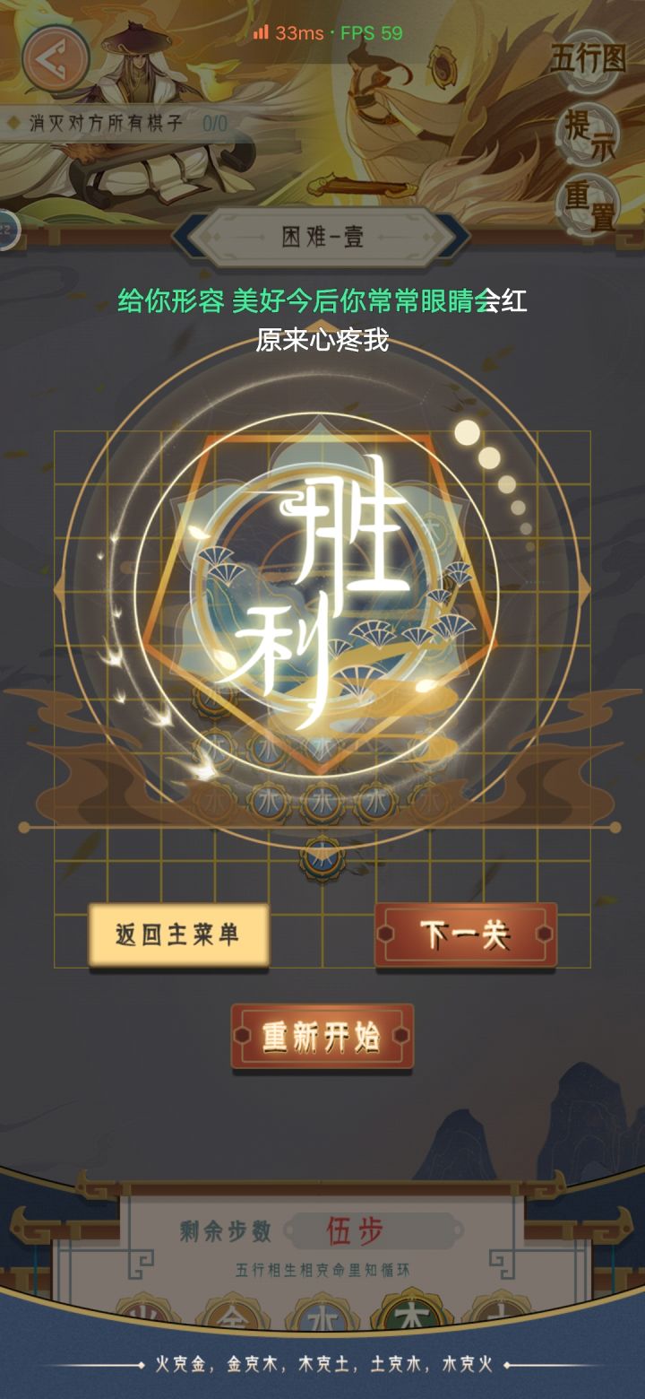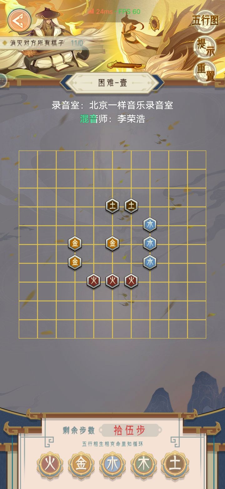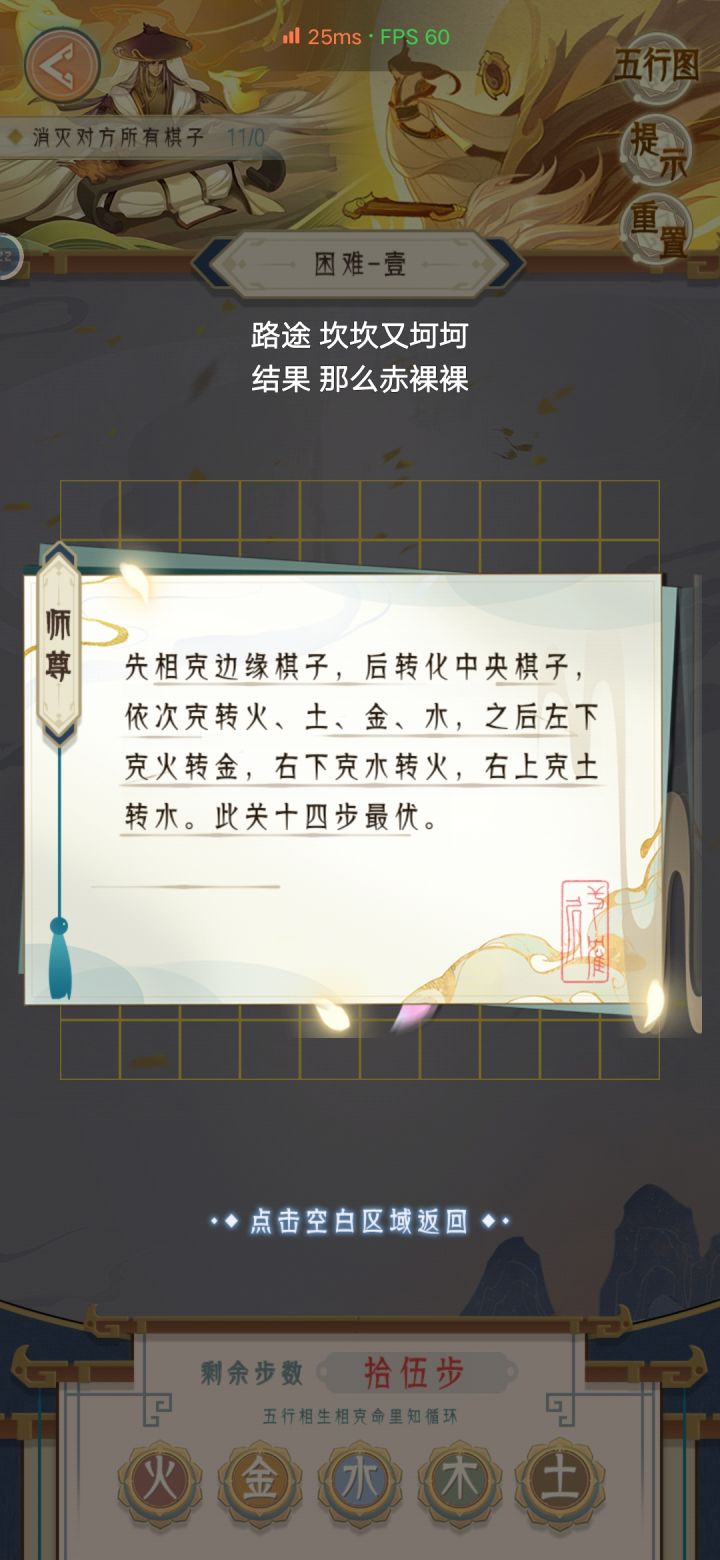 新手第二十关 有BUG 先下最下两土棋 再下中间两土棋 不会显示生成的金棋 但会提示胜利