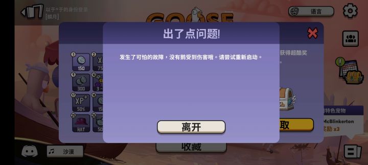 1月12号早上6.30满怀着激动的心打开心心念的鹅鸭杀,进游戏发现装备啥都没了,就还有个等级跟以前屯的货币,成就也给整没了,之前我的钓鱼服也被清理,官方快来看看吧