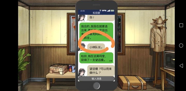其实我算是比较较真的人啦,关于阿树的消息是已读还是未读有点奇怪在密室那章我特意截了屏,发现阿树内个时候并没有看消息,可是在后面与犯人交谈的时候却又有信息已读的证据,这个小细节希望可以注意一下还有就是与犯人交谈时,因为犯人说了小林队长所以知道他不是松田警官,但是在密室那章的对话里,也就是这里也可以看到松田警官叫了主角(也就是小林)小林队长,虽说可能是我记错了,但还是有点奇怪呢……PS:语言掌