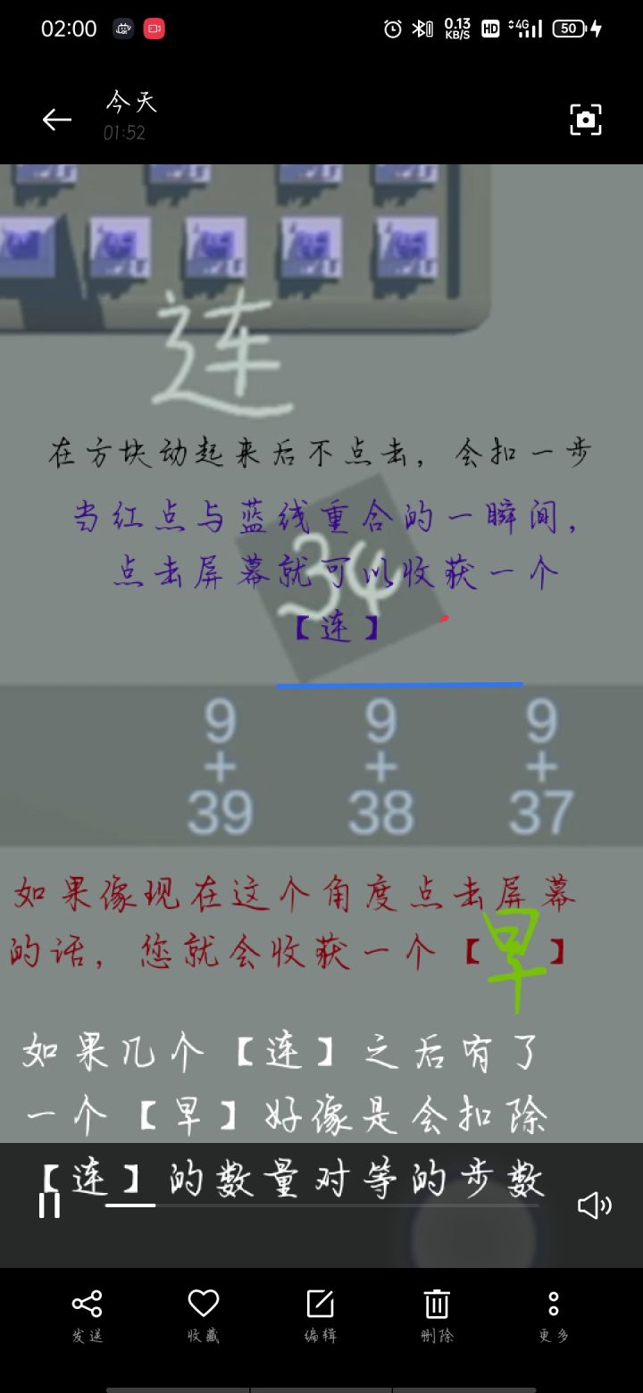 如果视频看不懂只能看下一帖图片解释了🙉我不太会解说。断连是因为我菜而且录屏手机会卡,偶尔敲几个连都是靠蒙的🙇希望断触问题能减轻一点,谢谢作者。配乐我后加的,建议玩的时候不要配音乐,因为小方块变速也太没有规律了!(提一个小小的建议,可能有点强人所难,希望能加音乐或者识别手机播放的音乐以此来决定小方块运动速度,不然突然变速我老了眼睛跟不上了🙀🙀🙀)