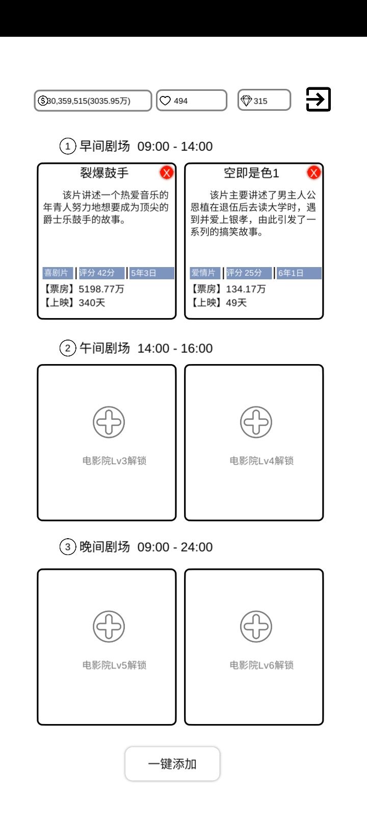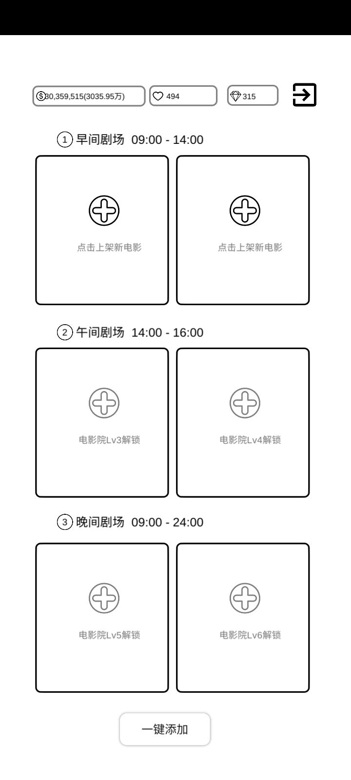 我服了,我升级个三级影院要看三个广告。而且还点不出广告。还时不时卡一下。刚开始看一个还能接受到后面看三个广告。游戏还可以,败笔在广告,服了。