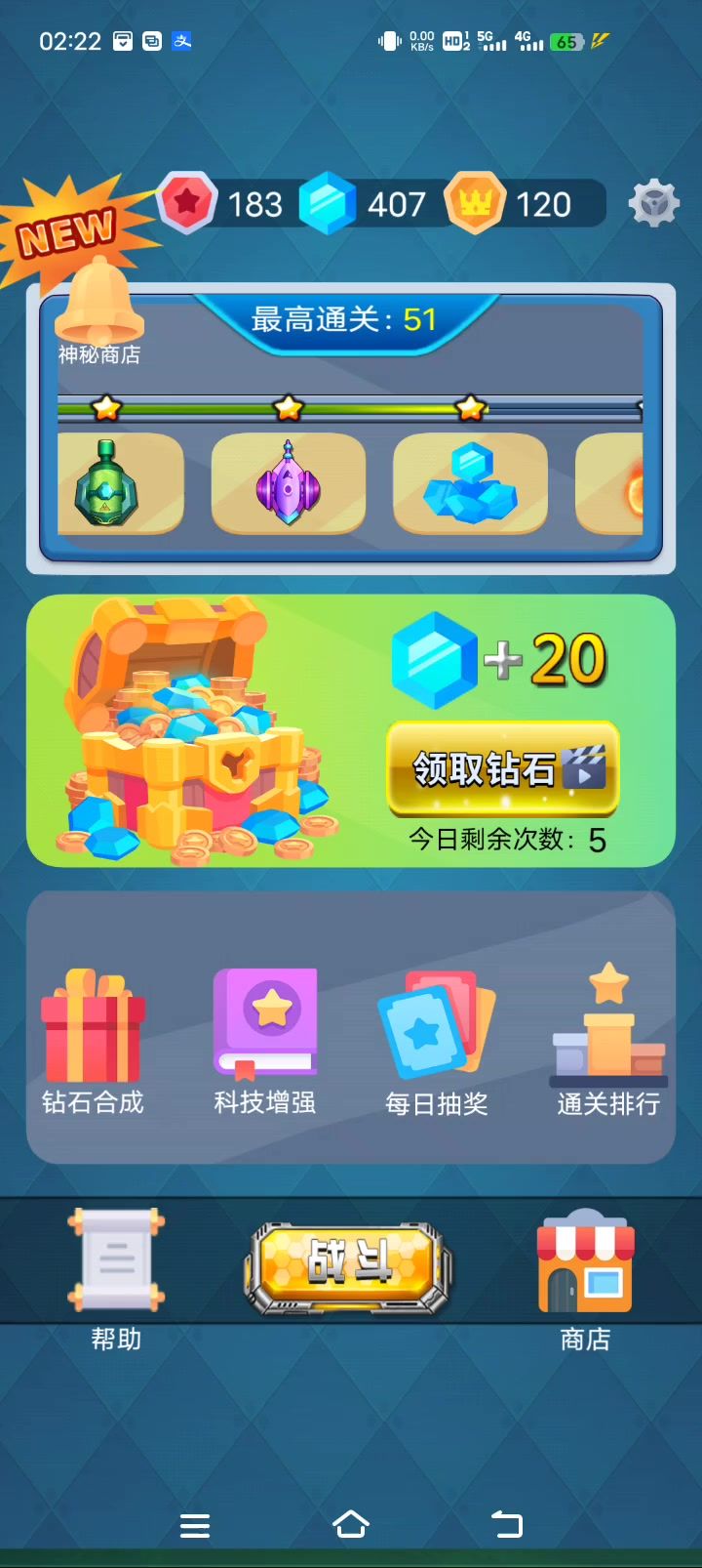 打到50关,领完钻石后返回大厅,再重新进50关打完还能领 瞬间就不好玩了。。。#游戏福利