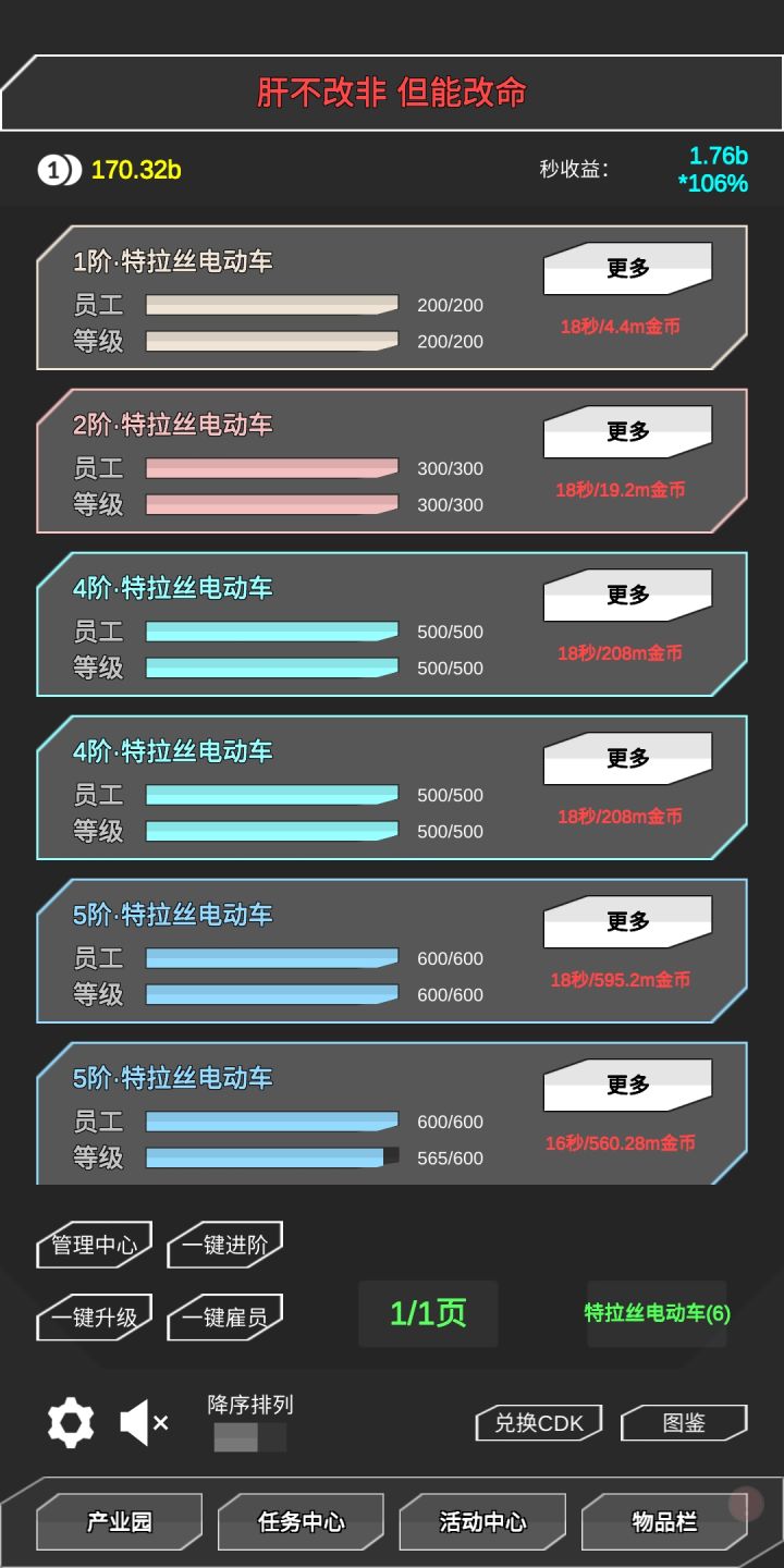 这等级有时候升级反而让每秒收益减少。5阶的员工拉满等级升到560级每秒收益比满级的每秒多2m