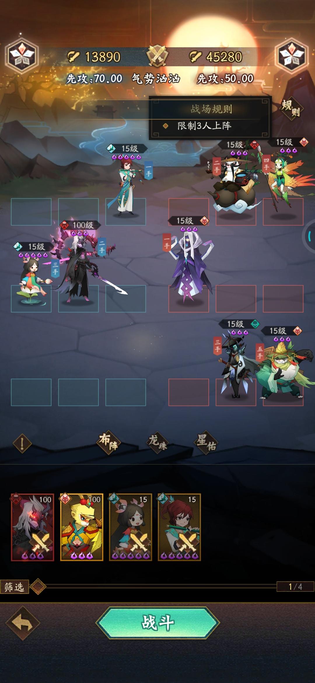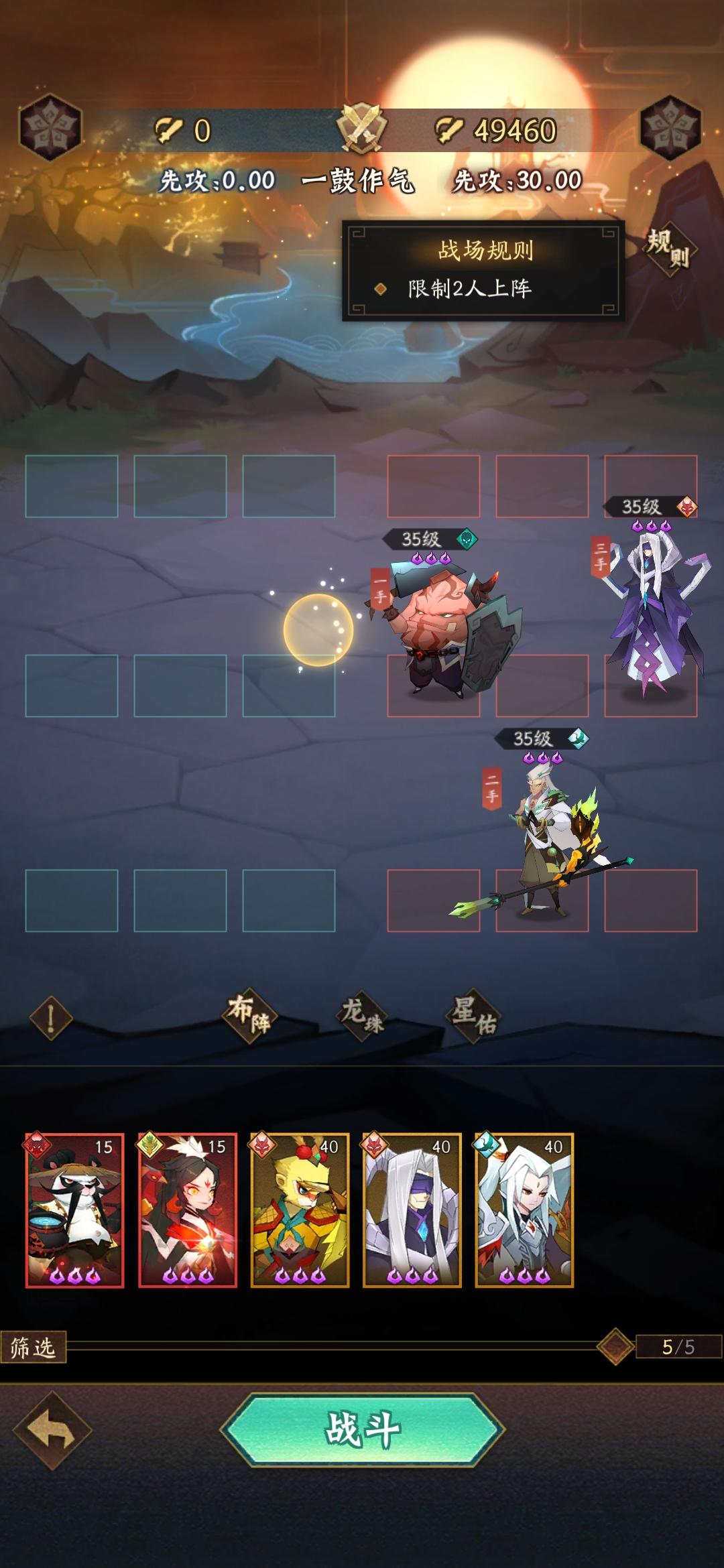 直接寻找一个喜欢卡来做文章他便是我们孙悟空的好兄弟牛魔王技能分析战法攻击方式是纵排何为纵排如图如图1牛魔王站在中间便是攻击对面中间敌人反之图2站在上排便是攻击对面上排敌人,不管人多人少,这是九宫格的机制。战法牛魔王防御提升25%(最高75%)如下图第二回合便是4层轻松叠满。被攻击者会-50%防御还是很给力。不论对面是坦克还辅助都能快速破防。每次普攻续航百分比在意这是被动,不像其