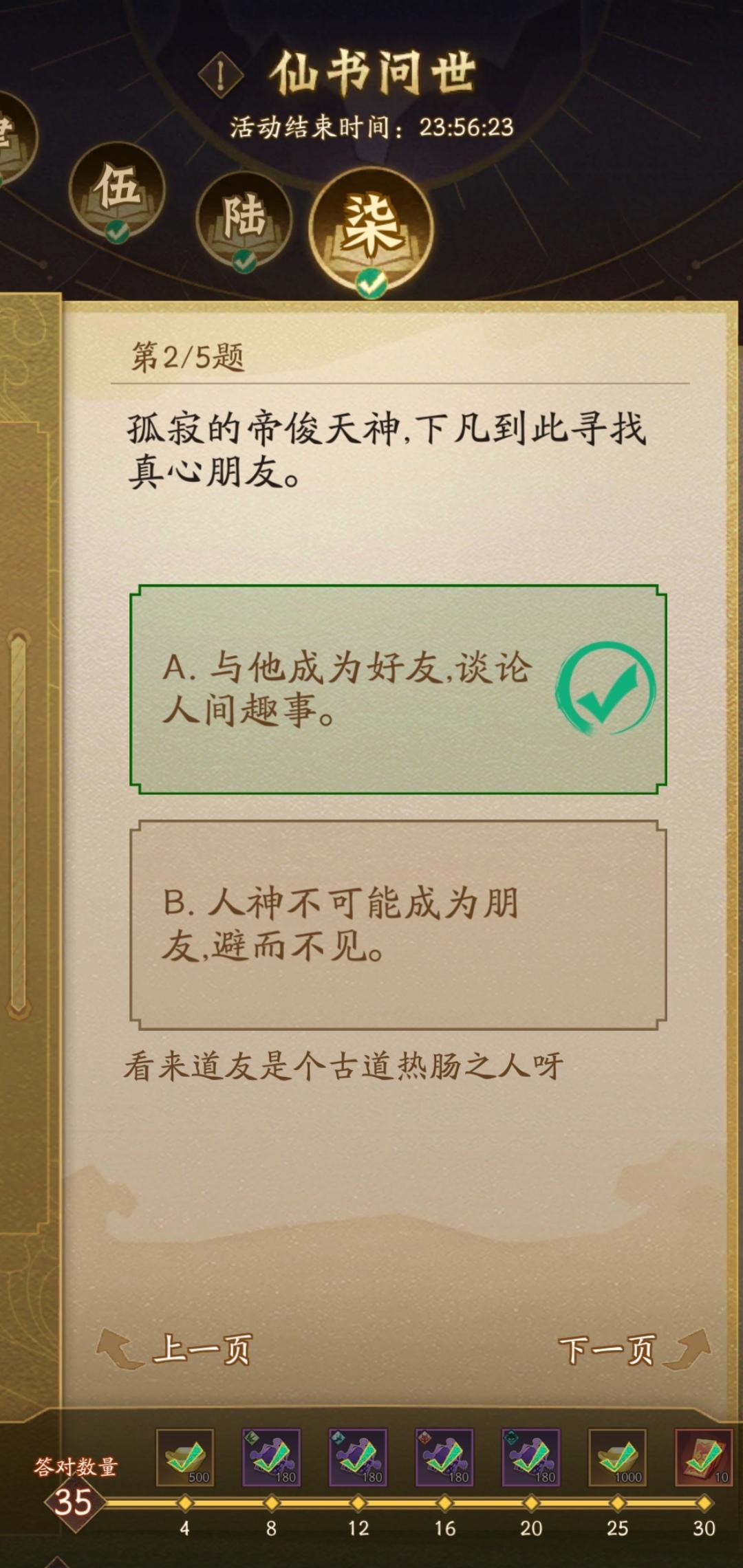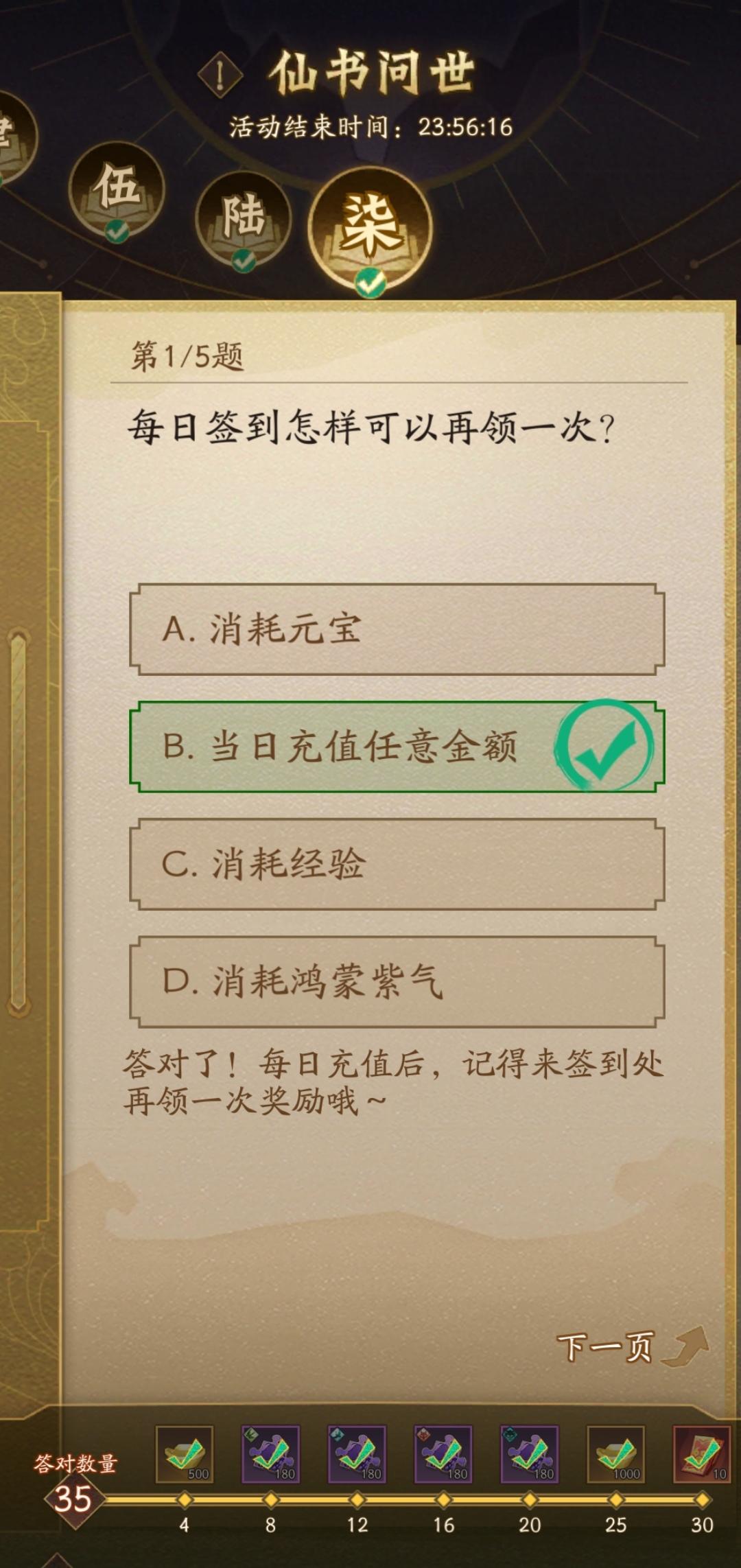 第七天仙书答案:充值任意金额,成为好友,二五日天人道,哪吒,三六日弥生道