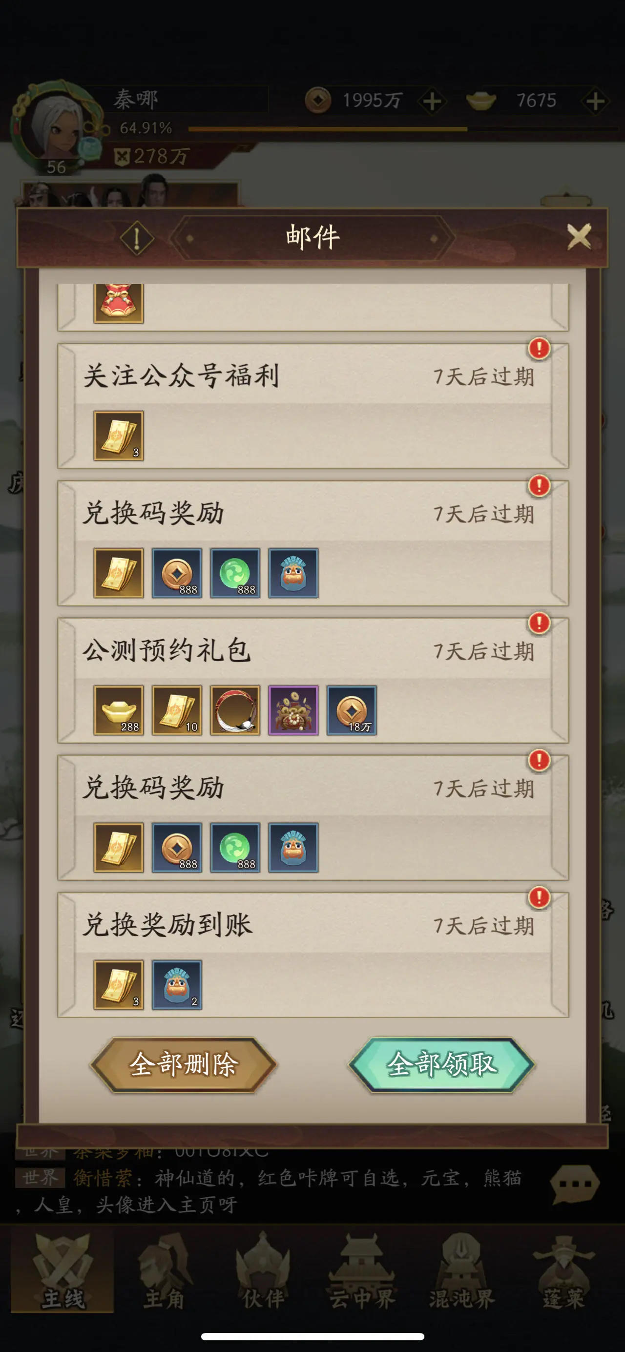 迎仙令:001U5IIJ需要的可以绑一下,有688元宝1.主角强度:第一天,第二天,第七天都能开启一个主角,总共三个主角。随着主线的推进,会开启三个队伍,战斗时每个队伍都必须上阵一个主角,三个主角最后都要培养。武圣:定位盾奶,优点有盾有奶能降气,缺点绝技扣血伤害低。开荒优秀,发展潜力一般。 剑灵:定位战士,优点能抗能打能闪避,闪避之后还反击,绝技又能眩晕你,天相还可提攻击。开荒一般,发展潜力