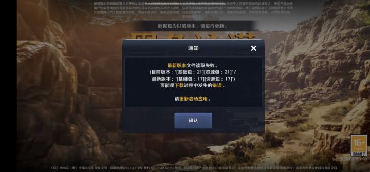 刚刚7点58分左右打算上线打世界BOSS。结果提示有更新,更新之后进不了游戏,提示当前27,实际17?没记住。让重启游戏,重启了几次都不行。我合计给游戏删了重新下载一下。不知道从哪儿能下载