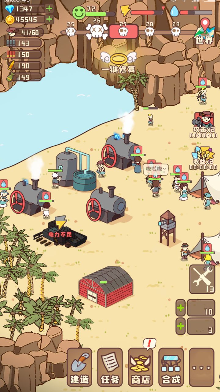 非常好玩啊,大大调整一下仓库可以加电量和水的上限问题吧嘤嘤嘤好想玩