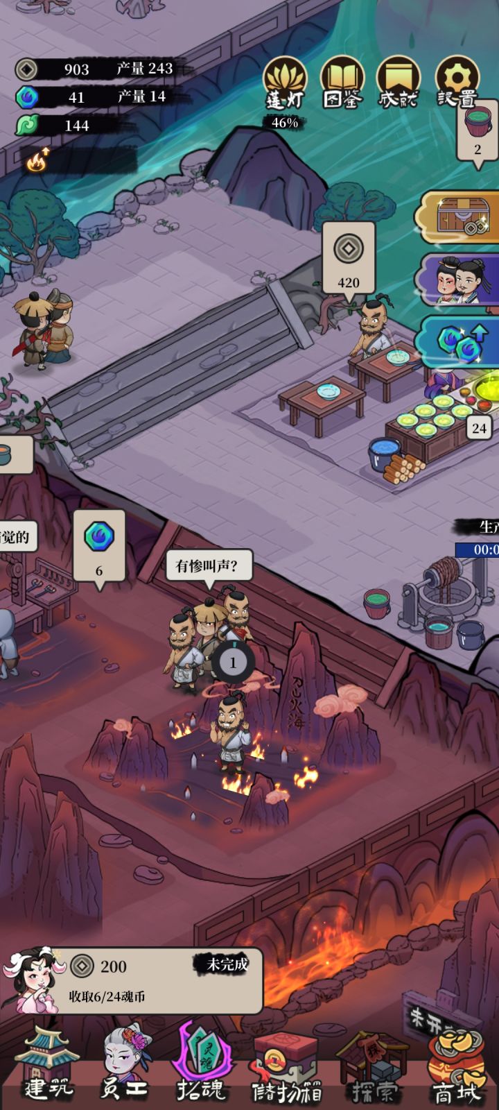 先声明,我是能看广告的玩家,毕竟个人觉得不充钱的游戏也只能这样了。这个游戏最大的毛病就是闪退,但这游戏对我来说依旧有可玩性。好的地方:1.游戏设定蛮有趣,每个鬼魂走路姿势不一样,说话蛮有趣的,感觉每个鬼都是话痨,就不会无聊ớ ₃ờ还有鬼魂会去门口接兄弟一起去判官一同定罪,站在受刑的地方聊天😂感觉在地狱和人间差不多,大家都喜欢逛街。建筑的话也还行,整体画风不错,看小动物就可以看好久(前期看了下广
