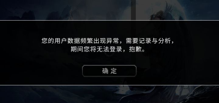 刚进游戏就提示异地登录 再登就数据异常需要分析 呵呵 在天梯呢