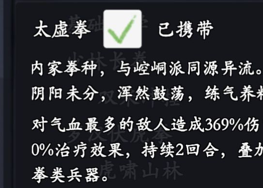 比如我把太虚拳的这个√点掉会影响主角打架时的基础属性吗