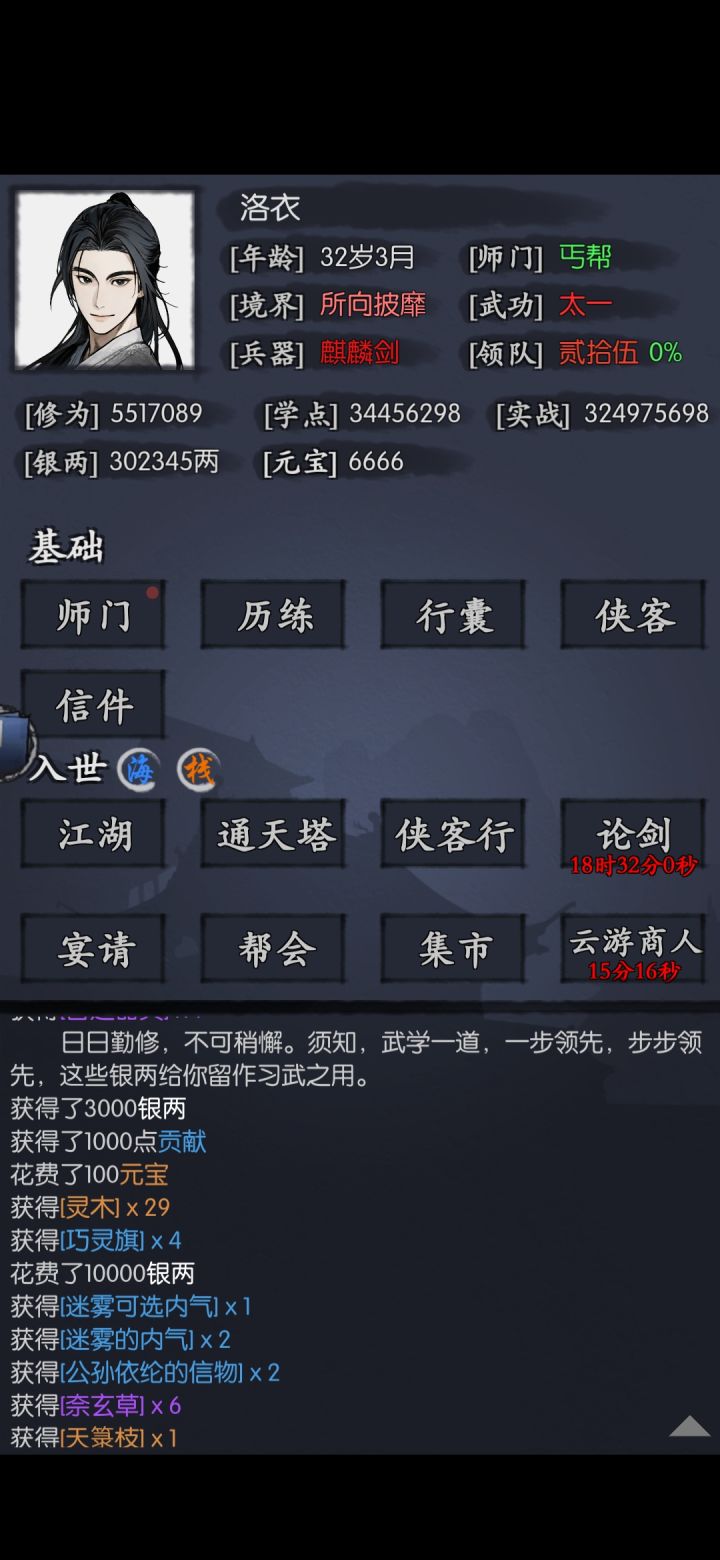 听从了群内嘉然今天吃bi王的推荐,18岁拉出了包不非大侠,魔武双修流,果然强无敌啊,20岁区内论剑和挖矿简直乱杀。不愧江湖人称包赢。推荐新人师弟师妹们练一下,新一代流派,比什么传统何灵厉害多了!