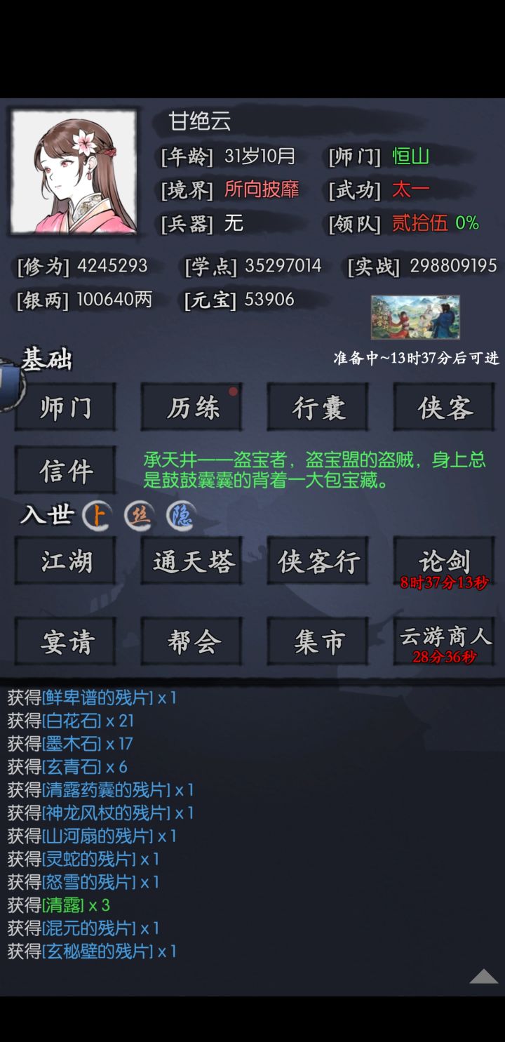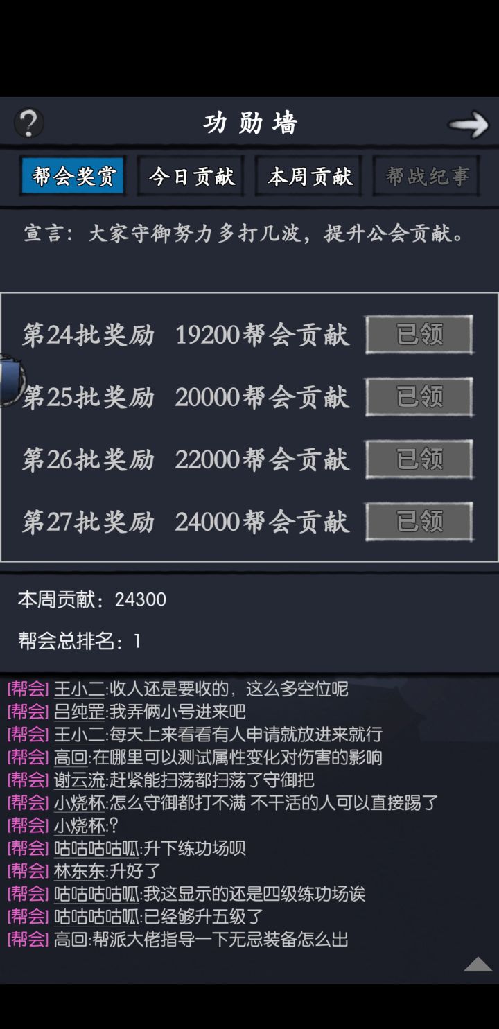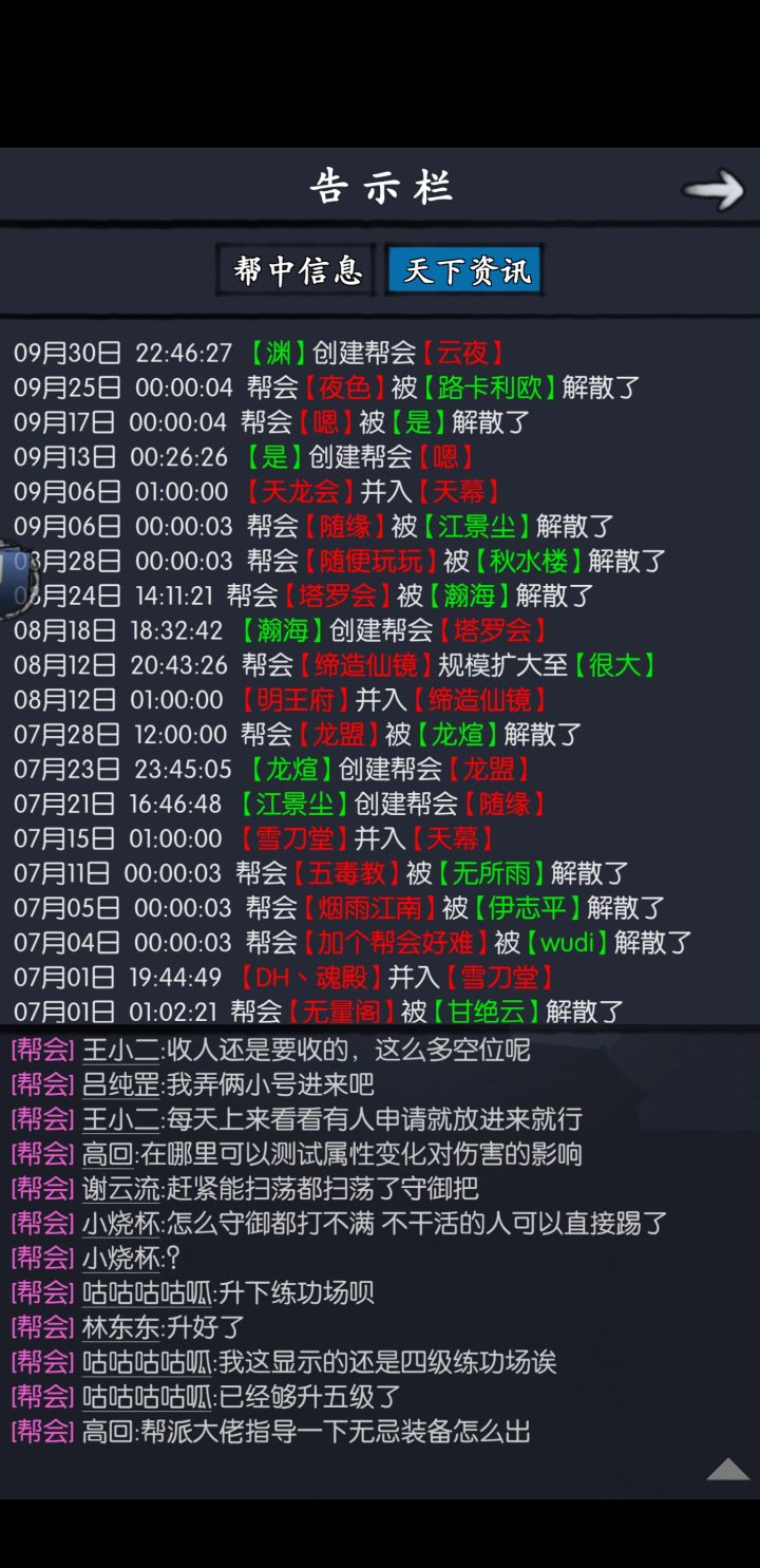 。 现在只能在御守才能看到其他帮会。我印象里以前在某个界面,某个地方是能看到其他帮会的详细信息的,比如说 人数 与 规模 。是不是因为我之前是自己创了一个帮会,是帮主才能在合并帮会界面看,平民是不配看的?P2 能看到自己一人帮会玩了5个月,现在去厉害帮会也快三个月整了,时间过得好快,慢慢长草哎。漫长漫长好漫长,赶紧姬未封返厂 ,这样多打点pve,强度啥的能快快成长