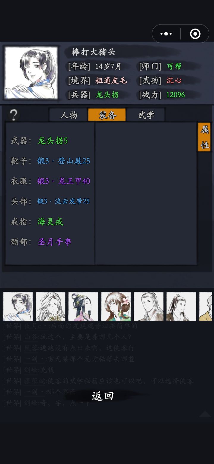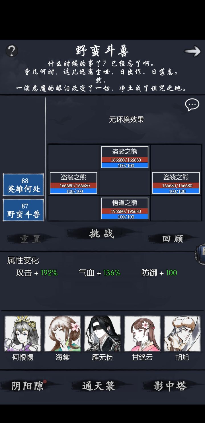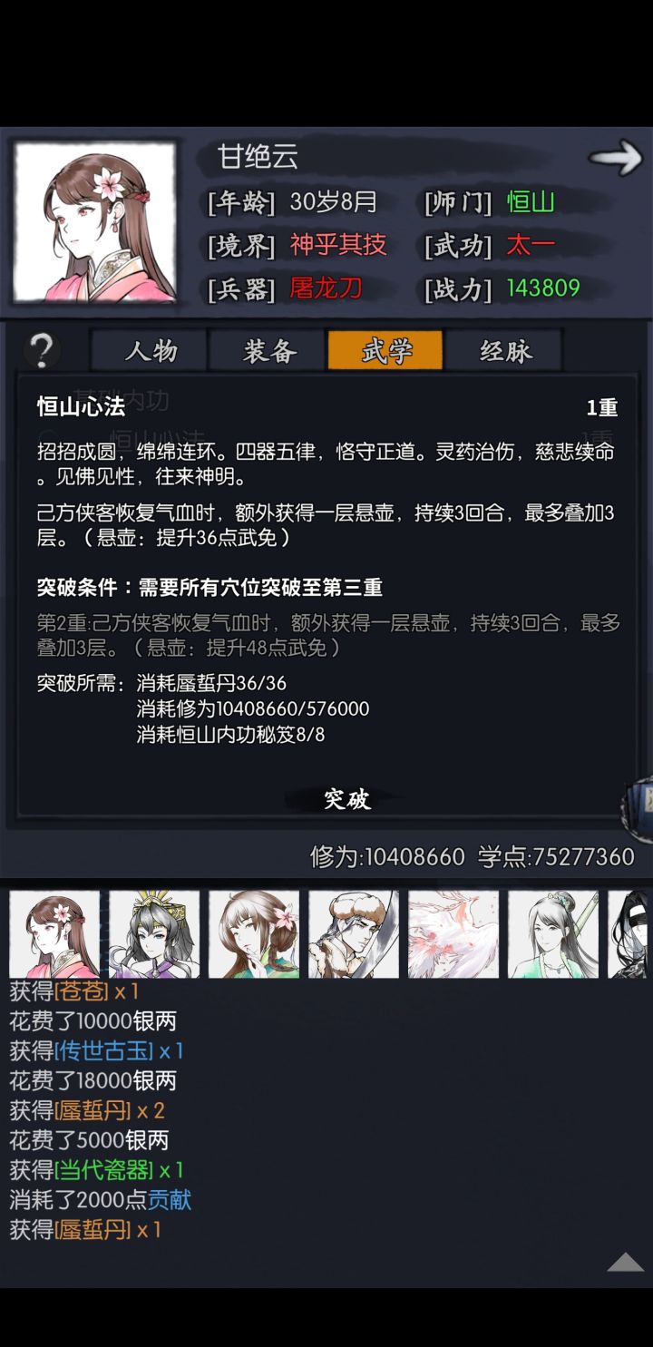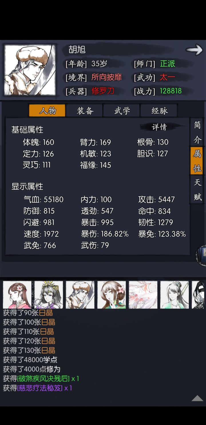 30.8楼主终于点出来主角2重心法了,门派贡献全去换蜃丹了..........如题,P1的侠客 耀空主、胡旭2技能、小何2技能 都差点意思,目前打到天涯海阁秋第四层,1v1打不过(小林已传功胡旭)有没有啥系统性的攻略啊然后我还想问一下,凤鸾我才开到4脉咋就12w战力了,我的认知里开5脉=10w战力啊。好吧可能是武伤和直伤堆攻击的区别还有就是天涯海阁秋25岁应该就打到了,打不过,现在又能轻松