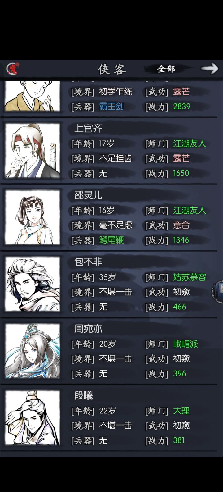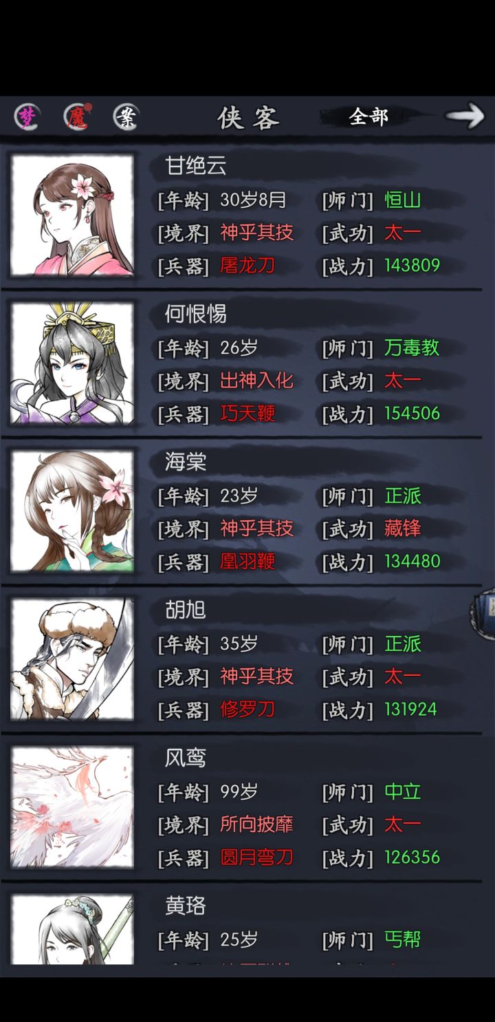 马上就要到第三天了,可以在画卯得一个亲密伙伴,任选一个侠客,仪瑶是过支线选的,现在纠结是选胡旭还是海棠。