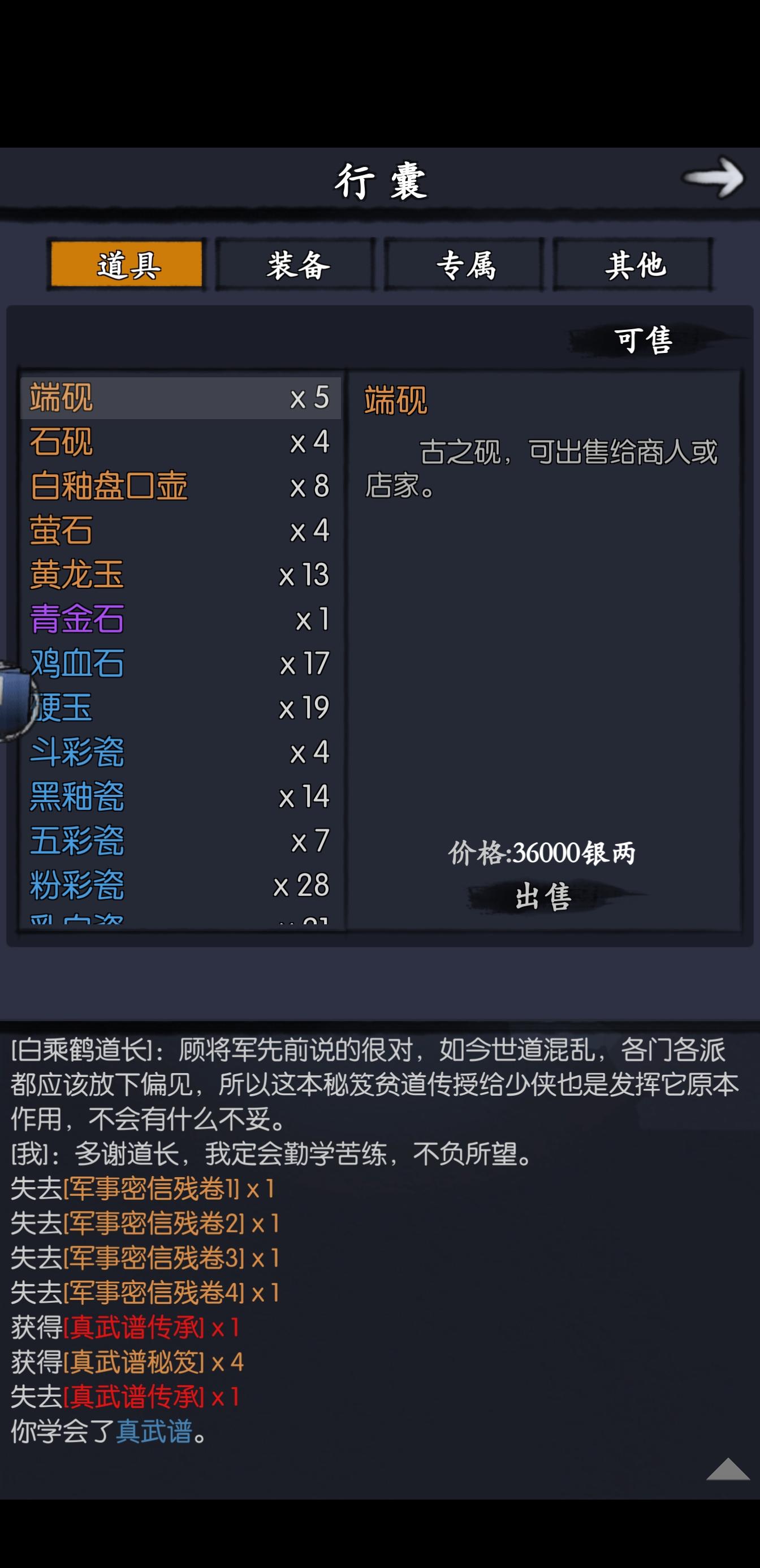 总共要12个端砚,但是没留,不过蛮好出的。我哪来1~2回合的爆发队伍xswl。但是我一直以为真武谱是假的,原来是真的。 明天上课继续推主线吧蜃蛰丹好难搞,云游刷出来概率蛮低的,刷到就买