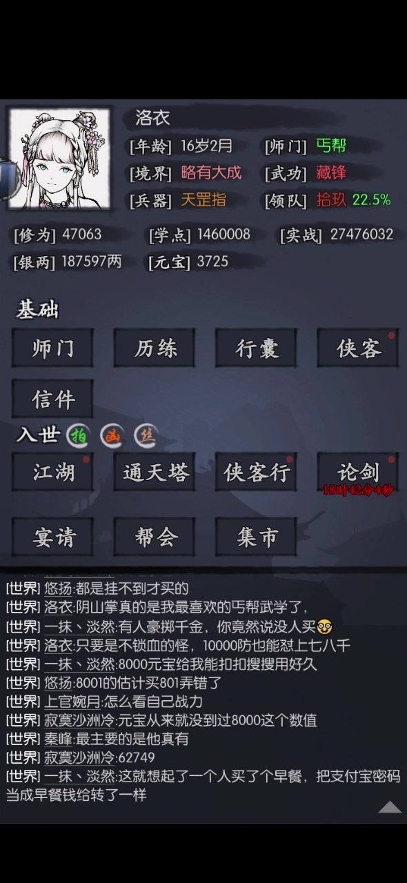 仍然是122%的通天攻buff,自己捣鼓了半天配装配速,流程是跑通了,但一直愁于伤害不够,绞尽脑汁想不到办法,此时师姐天仙下凡提出主+任的思路,硬生生把局势盘活了! 这把也是书香女丐在低攻buff环境下综合能力的生动体现,行侠客师姐推荐拿萝的多快好省优势也显现出来了 细节方面因为除了第一回合武学外小林会平A三回合,所以我这里将三合换成了红浊,提高平A回合伤害,萝的速度要慢于任主林,记得面板速度×1