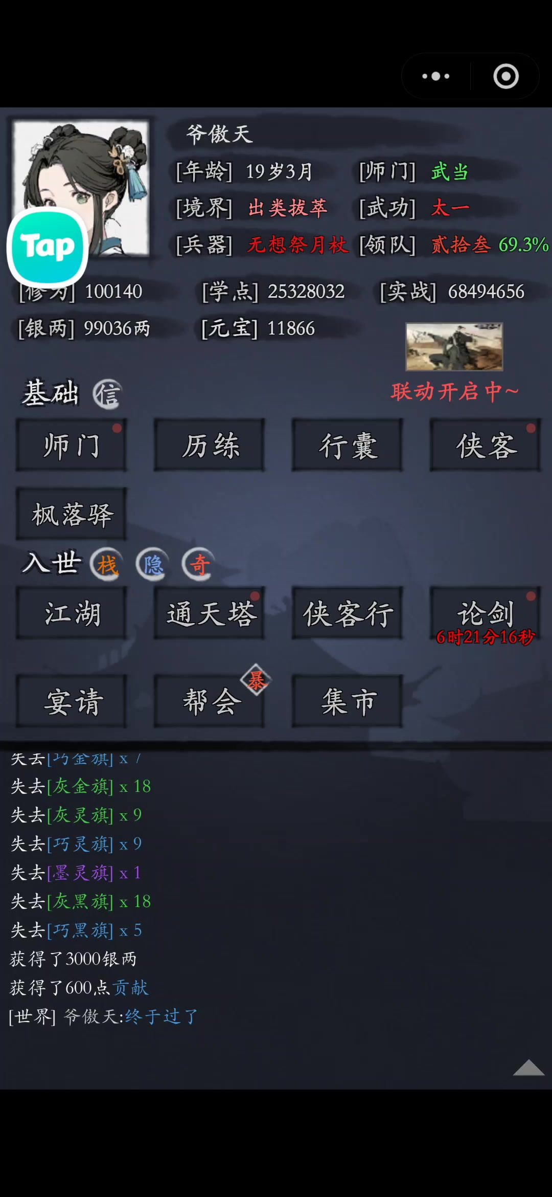 15岁9月零氪,自己凹的时候,主角用太虚减抗才把中间一剑秒了,但是没位置带丁修,老胡扛不住。 看了洛师姐的视频启发,靠盈盈的双加攻终于可以不用靠太虚了,那么就可以猴棍扛伤,再配合老胡抗后面几刀,终于过了。 具体侠客:老胡 盈盈 猴棍主 大剪中间 小林 具体逻辑就是,开局凹boss的攻buff以及小林无漏,盈盈双加攻,小林开天门秒一列,然后靠小林的残魂暴击把左边的剑杀了,最后下一个开天杀最后的刀。 重