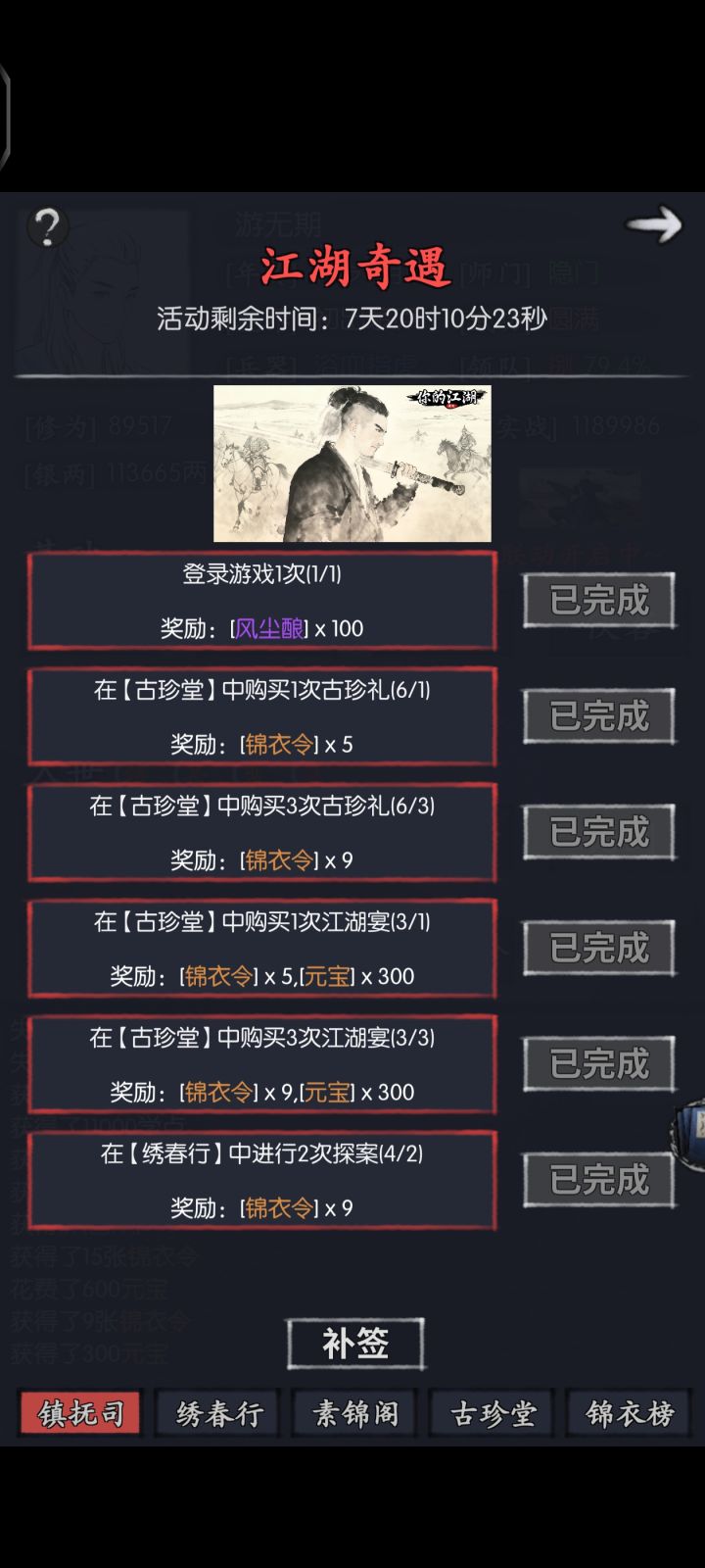 #丁修攻略 每天任务做完领补给,还可以补签塔奖励信物和令牌优先能掉落的先不用兑