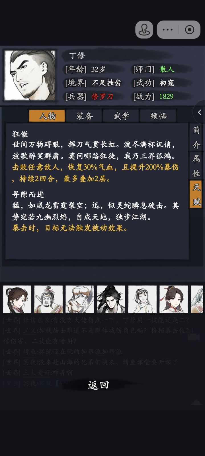 #丁修攻略 该说不说,虽然这次官方吃相很难看,一周里开了14个新区。但是加钱哥真的很强。不贴那些花里胡哨的数据,就只说使用体验。1.有了加钱哥之后,最好的开局是胡旭或者公孙再配个奶。买个六块钱小林子。这个阵容可以一直用到领10挂红。因为机制互动的选择,胡/公孙遇上丁修,只会扣一滴血。等于造就了无敌前排。2.推图效率大增。我自己在活动中开了个新号。三天就追上了我之前六天的进度。三月挂紫,四月