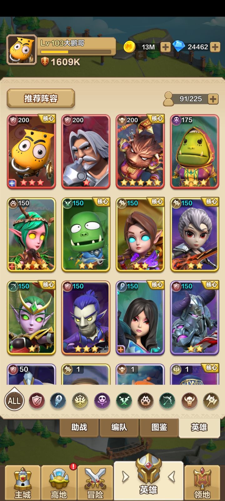首先阵容看看,后面都是根据我的阵容来分析,所有英雄到6星就换下一个,后排再猛前排站不住后排还是死的快1,推图,哀木涕,大姐,炮姐,闭月,野德,这套阵容思路适合极限哀木涕2奶加血保住,大姐也得跟上强度,大姐不死就不会漏兵进来切后排(主要保住奶)像9-40后排死了会给boss加血就不用上后排,极限堆前排2,爬塔,延伸阵容需要2个阵营的2套,也适用于竞技和领地战斗血怒阵营,哀木涕,神棍德,野德,炮姐
