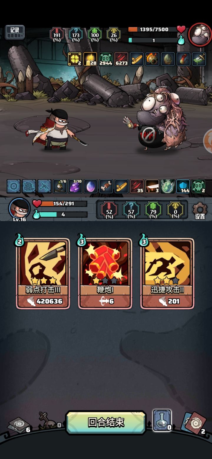 今天是刮痧流,还好血够厚,道夫鸟和骑士铁靴有效防止暴毙。如果能拿到加攻击力的宝物就更好了