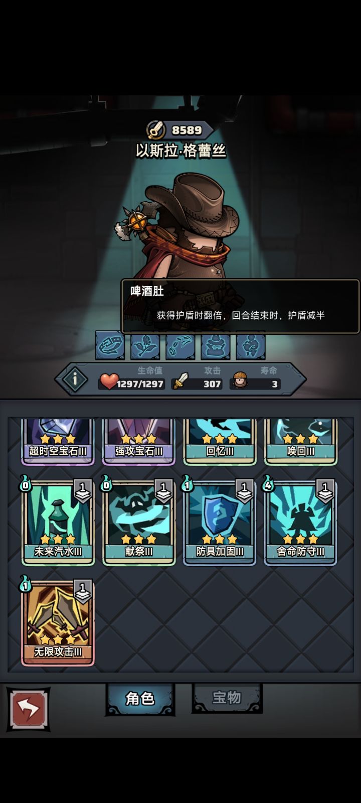 核心思路:通过收藏品土星手办:失去护盾对敌方造成效果伤害啤酒肚:获得护盾时翻倍,回合结束时护盾减半防御技能:盾牌加固:护盾值提升100%在通过舍命防守获得基础护盾后,通过无限宝石获得过牌能力。未来汽水、唤回、盾牌加固,在回个内获得巨量护盾,在回合结束后,通过失去护盾来造成巨额伤害优点:otk,伤害足。配合冲天辫可以单轮大回血三卡配合无限费,限九张也可以在两轮迅速击杀缺点:遇到你的护盾