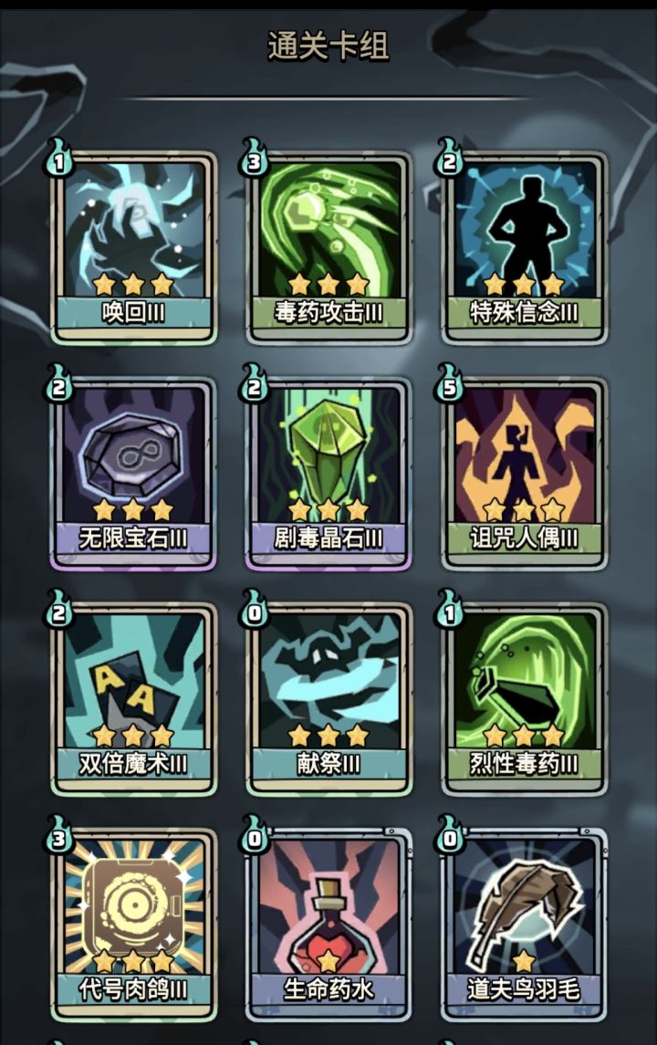 祈愿和毒双修主要靠 烟歌 上毒,特殊信念 把毒转化为祈愿,再加一张 退让 卡即时生效buff层数汽水/唤回/回忆/无限宝石 凑无限流宝物需要毒免,不然前期遇上反毒的很容易被克制遇上毒免怪就祈愿单输出幽灵buff死亡反弹也比较克制,层数不能叠太高仅供参考