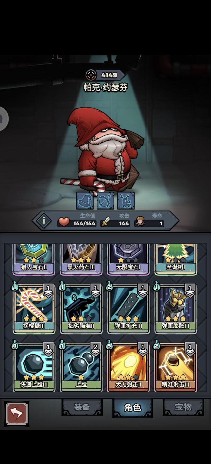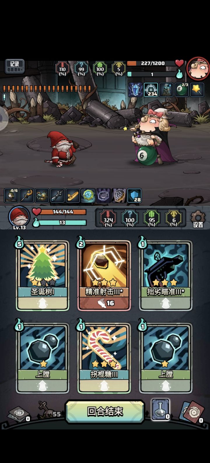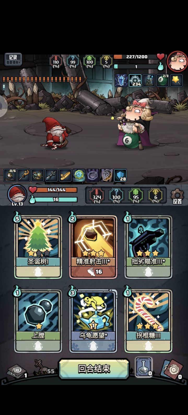 远古遗迹圣诞枪手,不知道啥流派,但是只要有耐心,无伤一枪干掉boss大概整理一下核心卡,3星拐棍糖、无限宝石1星就可以,3星拙劣瞄准或者3星精确射击前两回合把无限宝石装上,最好留1点发力开始叠精准,拐棍糖~拙劣瞄准/精准射击~愿望卡~拐棍糖无限重复,愿望卡可以刷出健康卡回血,10发子弹叠个120层的精准就可以,但是要确保可以一轮带走。我用的拙劣瞄准,黄色弹夹上限掉光了,所以必须一发带走。卡