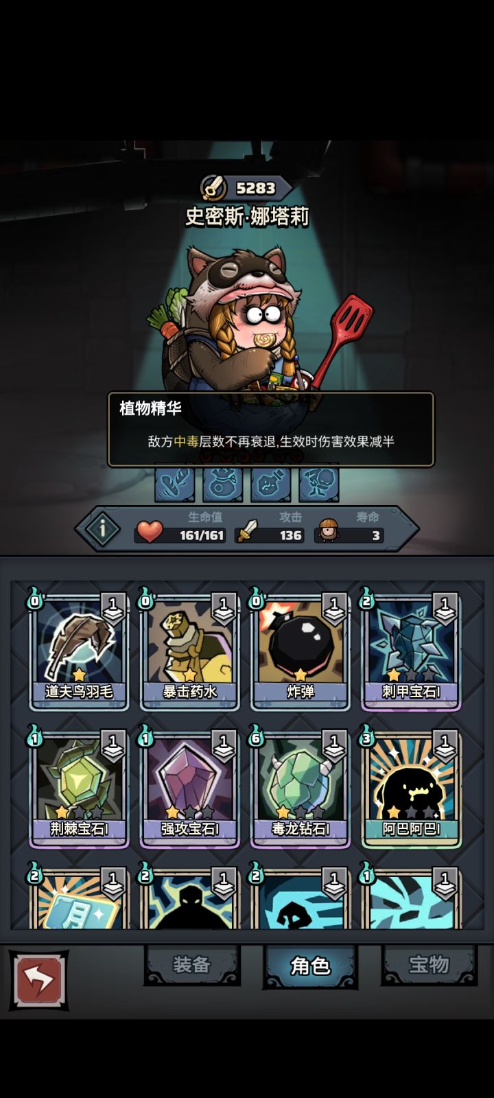 首先是关键特性:植物精华,保证中毒层数不衰减然后是关键宝石:毒龙宝石,中毒层数转盾再带上射手护腕和诅咒肉骨,或者一个花喇叭,每回合自动给怪物上毒。开局给自己挂上毒龙宝石,就可以一直下一回合了。#攻略