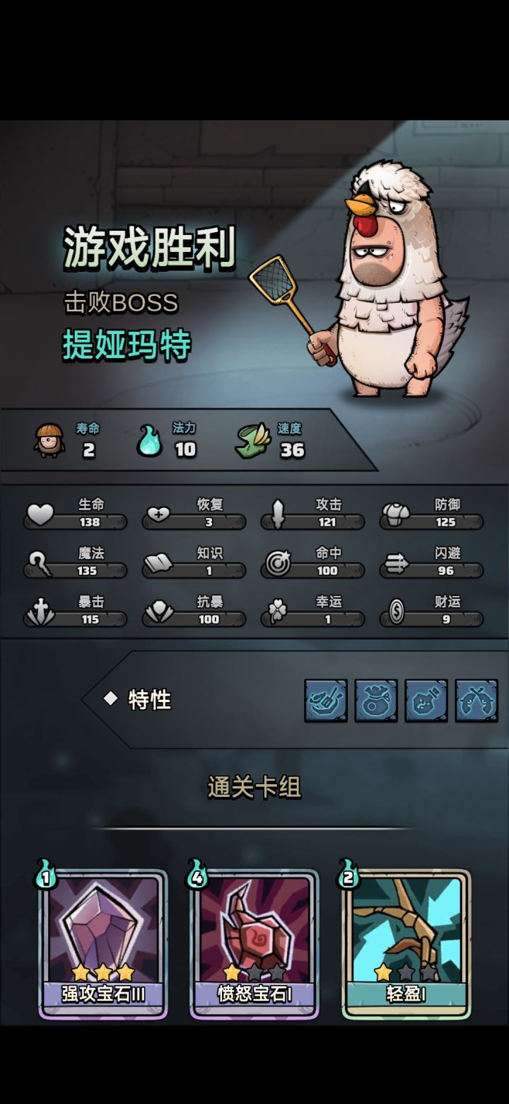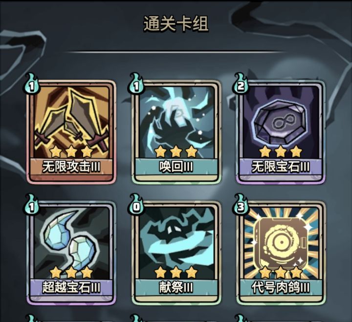 循环核心:轻盈+愤怒宝石拿到愤怒宝石后删卡就好了,删到剩三张就能够一回合启动,无限循环主线推图很好用的套路,输出手段很多样,强攻宝石叠攻击,洗牌叠盾+盾击等等,都拿不到刮痧也能刮死boss