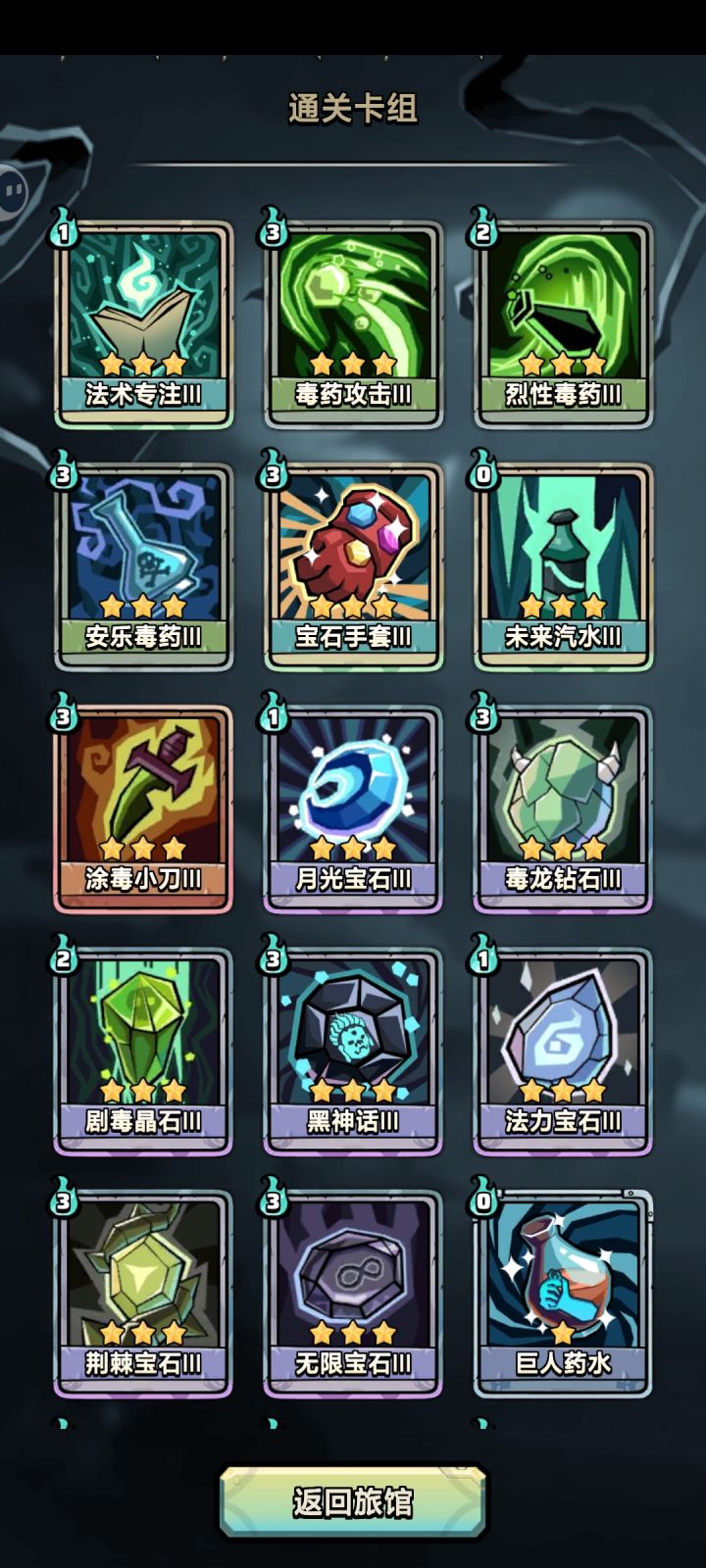 key牌:冷风、过度解冻、火焰打击必备宝物:火焰草莓核心思路就是通过寒风加寒冷buff,过度解冻三倍加燃烧buff,同时因为火焰草莓加到了大量法强,在通过火焰打击输出。其他牌可以选择智慧宝石、寒冷宝石和火焰宝石增加buff层数,用回忆和献祭过牌增加起手速度,宝物可以选择加法强的从而加输出。卡牌成型后无论是pvp或打遗迹输出都很爆炸,深渊基本也是一两回合结束战斗,真是打家劫舍之利器。