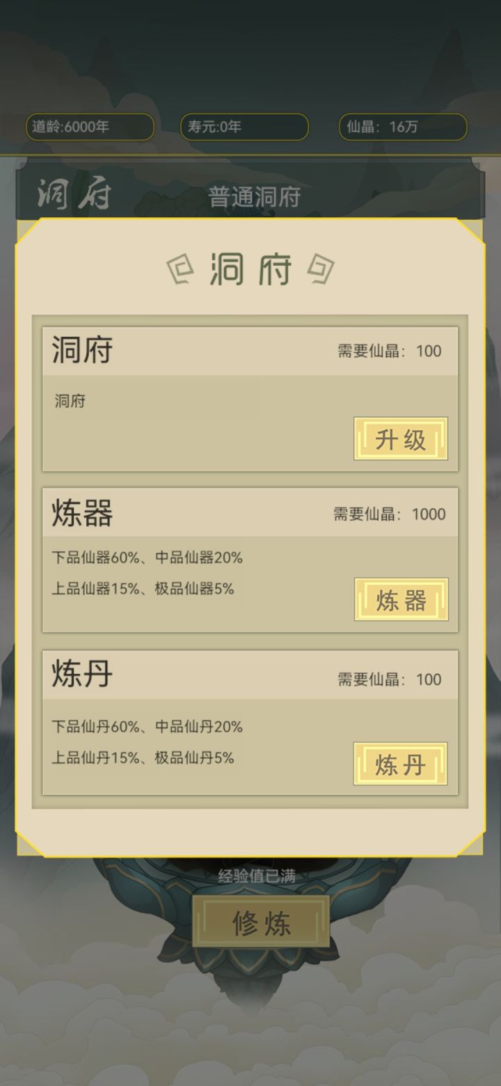 洞府道场再升一级就变成这样子了 3个选项只要点了就直接卡死