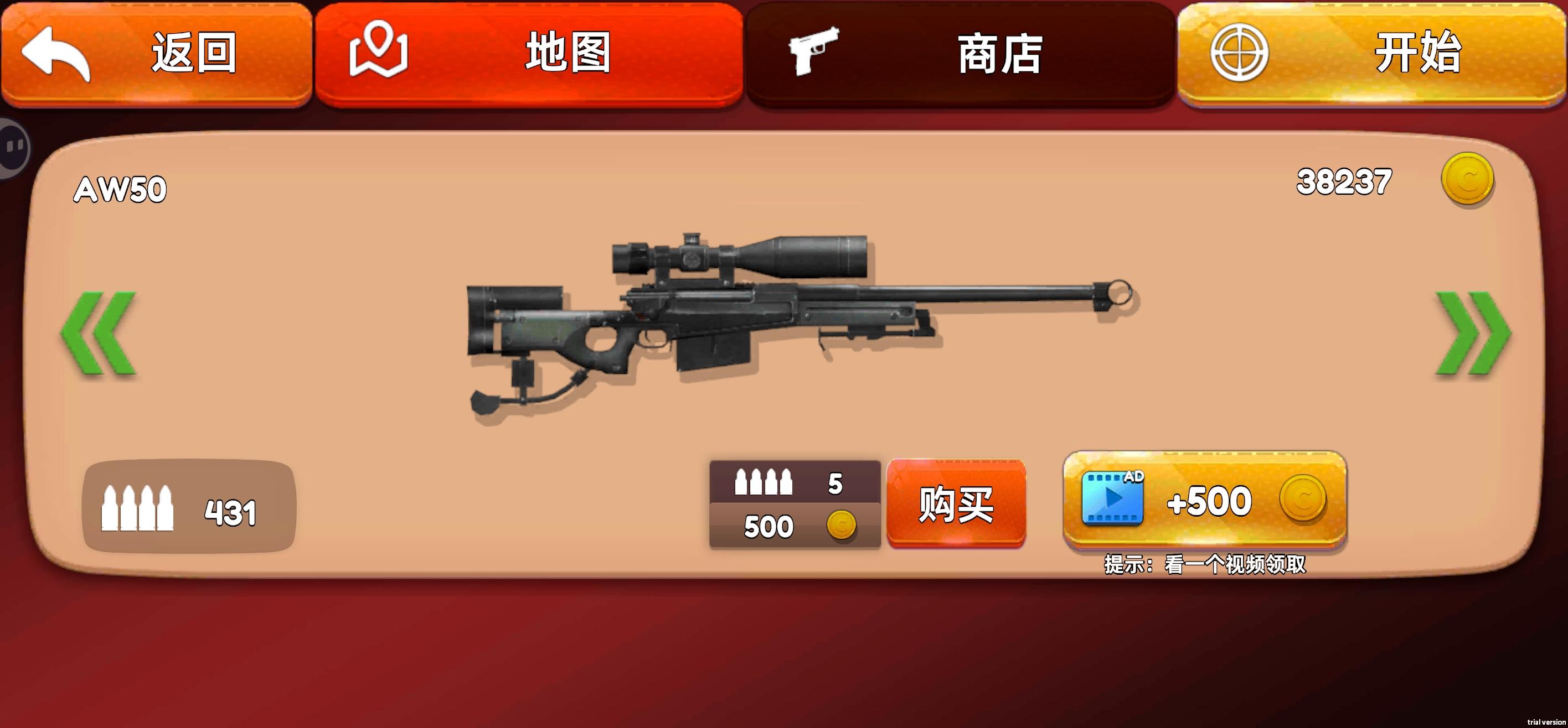 效率还不算特别高,拿满了也不会再打开这广告茅坑游戏。大致速刷成就方法:1.一开始先正常玩,双倍奖励广告不用看,一关也差不多就15秒;2.先攒钱买下AW50,一枪一个子弹还便宜,然后一关一关过,没多久杀敌头数任务也就搞完了,赚的钱随便就买空仓库;3.到这时候一局敌人也差不多是五个,角色往外面站一点,一会就提示要支援,看一个广告完成成就,然后接着等,画面闪黄框说明残血了,这时候把敌人打没又是一