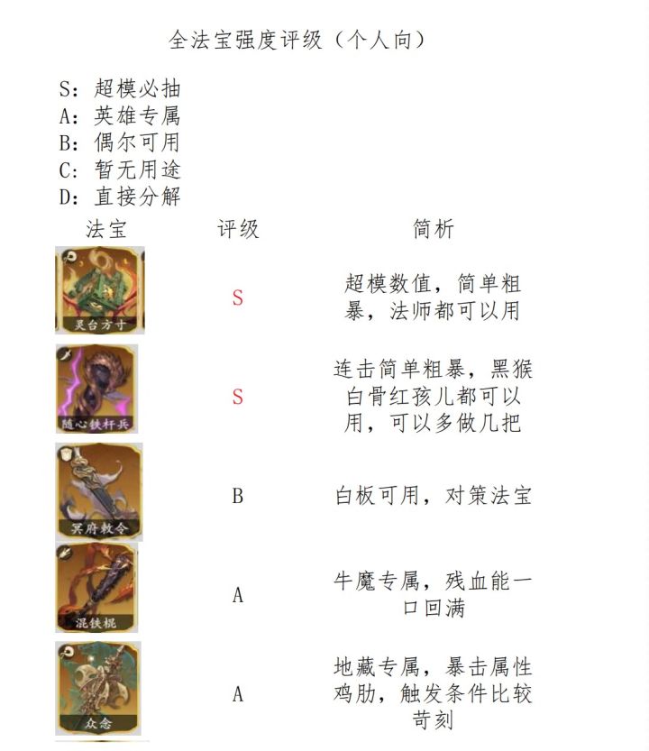 【1.1(下)攻略】全法宝评级简析