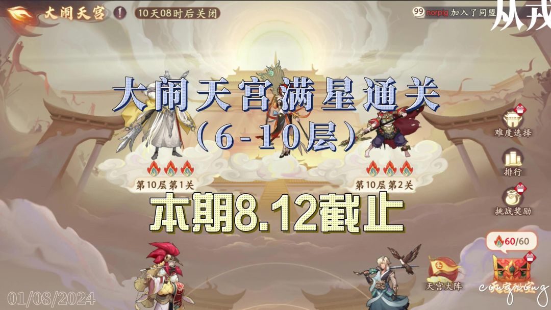 【1.1(下)攻略】大闹天宫满星通关(6-10层),本期8.12截止