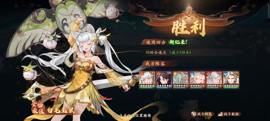 10回合就是这套照着打就行,9回合需要老鼠神和蛇都是神,蛇带满级黑榜,然后在蜘蛛攻击后老鼠触发反击,蛇蛇触发反击后再触发黑棒,然后白骨砍一刀加追击,另外附上白骨面板#西游笔绘西行