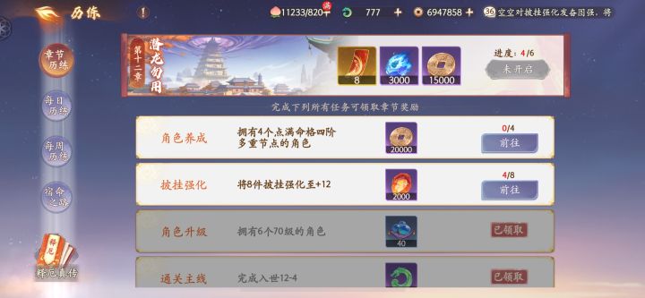 有谁知道这是啥情况?任务要求点满四个角色的命格第四层,我六个角色全点满了,这还显示0,无法完成也就无法升阶
