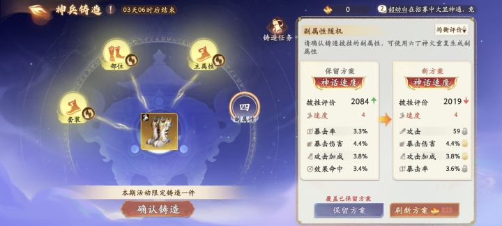 提一点建议道果,司命等道具获取困难。妖王悬赏,宠物之森等活动过于繁琐。装备强化选择界面没有副词条交集选项,以及按某词条属性排序选项。不同装备副本搭配太多,建议简化,比如:攻击,暴击,爆伤,速度一个副本;防御,生命,反击,回血一个副本……或者四装备激活效果一个副本,双装备激活效果一个副本。并且不同副本的强化材料完全没必要区分。#噗噜噜实验室 @游戏懂哥