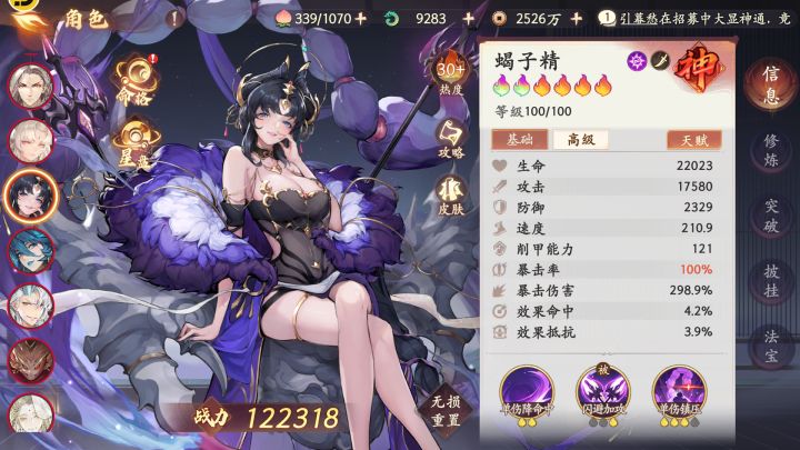 说实话这次的新英雄让我有点失望😔这蝎子精pve的单体伤害是有的,但是用起来有点卡手,身板极脆,运气不好一碰就死,听说养满了情况会好很多,但那来这么多资源。pvp的话感觉低人一等,不能快速启动终究还是要看人脸色,我这练度连上场的资格都没有,闪避还是太看脸了。总结氪佬的玩具,平民拿来打生存压力不大的单boss关卡有一定提升。宠物不太好评价因为我运气太好了,紫蛋出了三个神宠星盘
