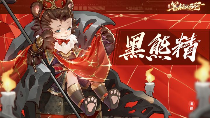 >>“经书经书,你给我这个没告诉师姐她吧?”>>出场角色|黑熊精黑风山景色秀丽,灵力弥漫,山中有一小黑熊,常伴老禅师。每日听师讲禅,渐通人语。小黑熊生性单纯,随老禅师苦修,在雪中静坐,赤脚走过石子路,学习武艺,渐悟佛理。然其执着蜂蜜,常常欲罢不能。>>国漫战斗动画>>战斗定位#西游:笔绘西行