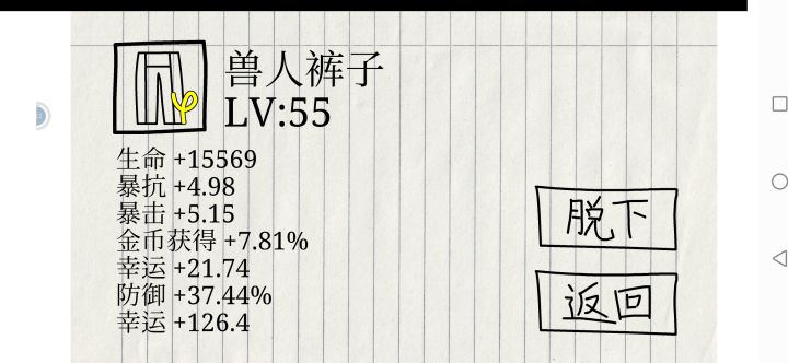 1-10的时候,boss属性相较小怪大幅提升,我们需要在1-9刷至十级,顺便攒钱。(先肘后拳巡回打出,穿插大招)十级以后,买出装备。(商店购买的装备随人物等级的提升而提升)我是直接刷出了B级拳套,补全了上衣,然后打穿了boss。(过关装备附图1)属性大致为99攻,51防,544血量的装备加成。