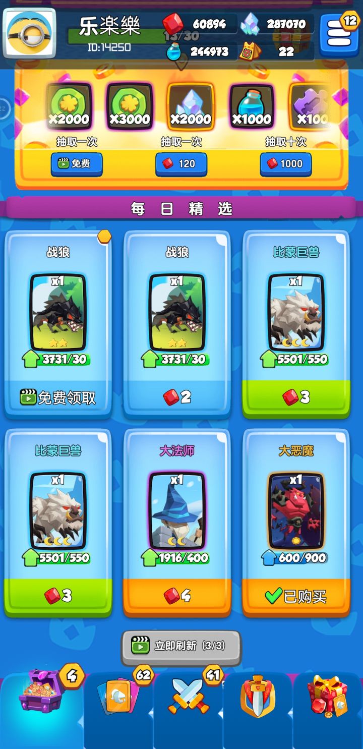 出问题了,所有随机紫卡就只出这个法师,每日精选怎么刷都不变,反复可买这六样!