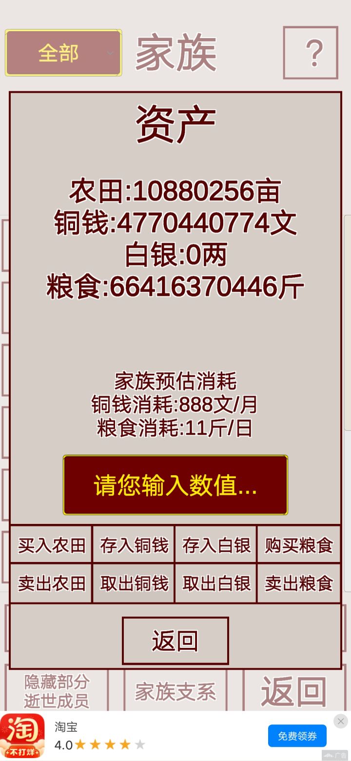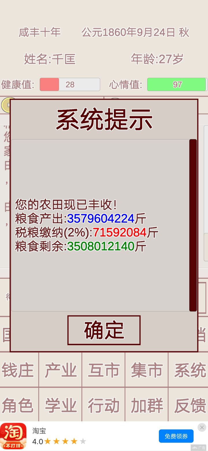 成功成为大地主,年入差不多1000万两,但数不能填亿往上的,只能一次九亿九亿地操作😭😭