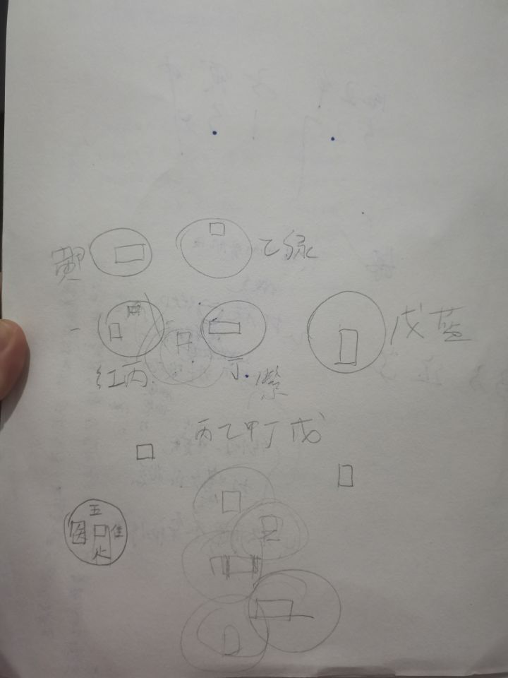 匹配颜色和方位 铜钱中间的洞是口 俄罗斯方块多余的位置就点到没有文字的那一面 还真被我瞎猫碰上死耗子般解答出来了