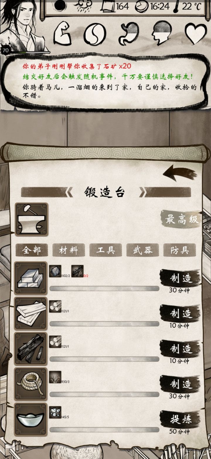 想给策划大神一些建议2【音乐】1音乐和音效建议可以选择关闭音乐或音效2音量控制建议可以选择音量控制【音乐完】【出门】1意外事件建议增加碰瓷事件2时间增强建议野外意外事件的敌人,随着时间增强敌人越来越强,建议敌人再强,最多比贝大夫强一些再弱也别比狼弱。【出门完】