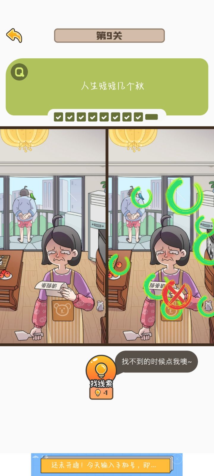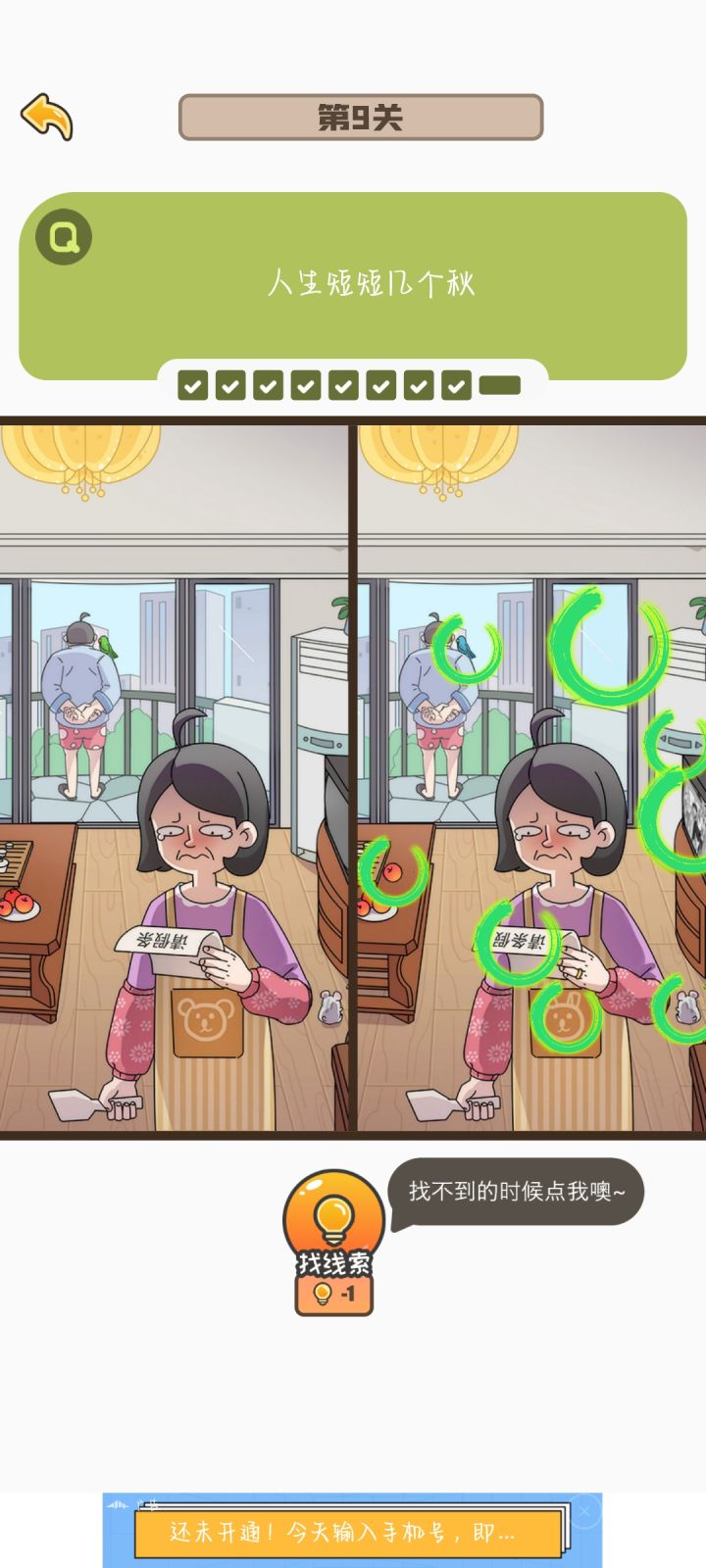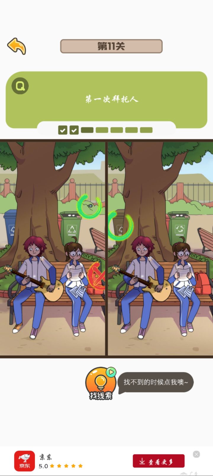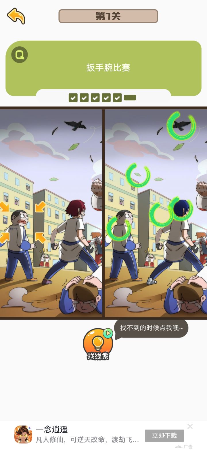 刚更新完就已经把找不同全部都打通关了,虽然只用了一次提示,但是有点小bug就是有的时候你点上了,但是他下一秒钟就会把这个圈圈给搞没掉,就导致了我玩着玩着差一个了,一直在那边找,结果发现是我之前点过的,然后就是我退出那个游戏之后,没有刷新,搞得我还以为我玩那么久白玩了