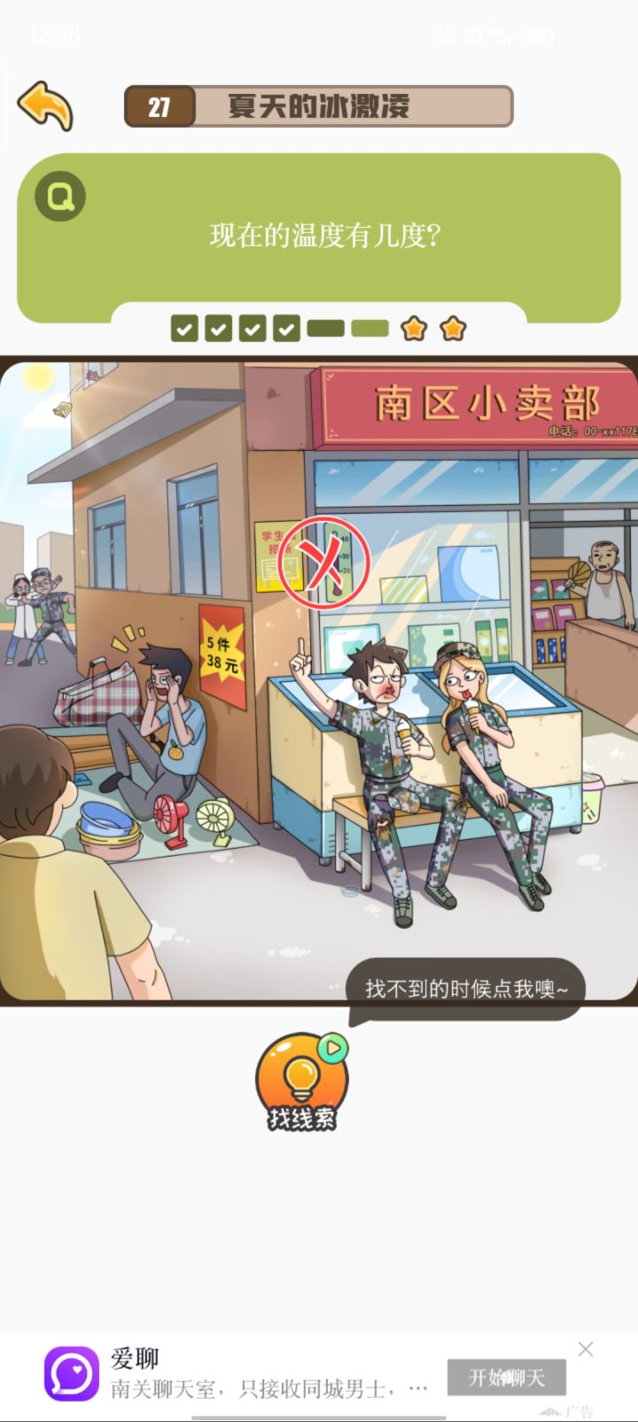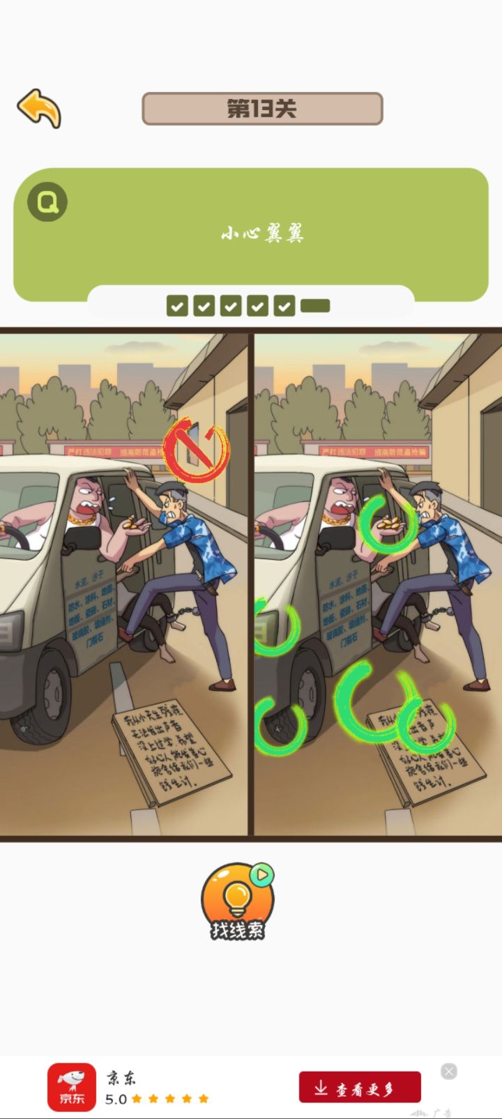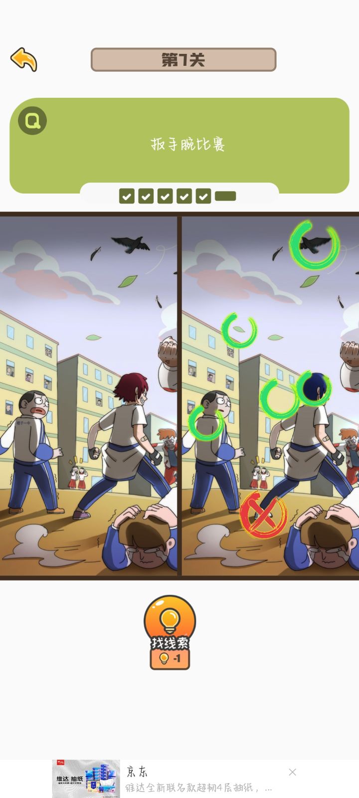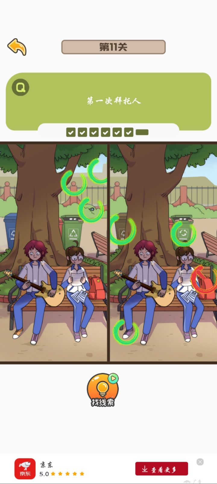 刚更新完就已经把找不同全部都打通关了,虽然只用了一次提示,但是有点小bug就是有的时候你点上了,但是他下一秒钟就会把这个圈圈给搞没掉,就导致了我玩着玩着差一个了,一直在那边找,结果发现是我之前点过的,然后就是我退出那个游戏之后,没有刷新,搞得我还以为我玩那么久白玩了