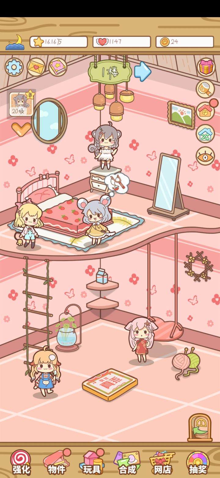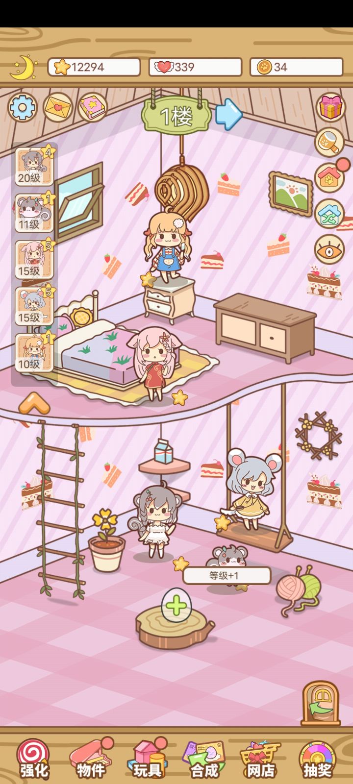 告诉大家一个如何刷爱心的技巧,就是把第一个房间的宠物抛弃然后不停养新的。每个等级的宠物升级之后会给相应等级的爱心。以我目前的能力,我养花栗鼠收益最快。同时两个一级的宠物合并升星给家具的概率最大。